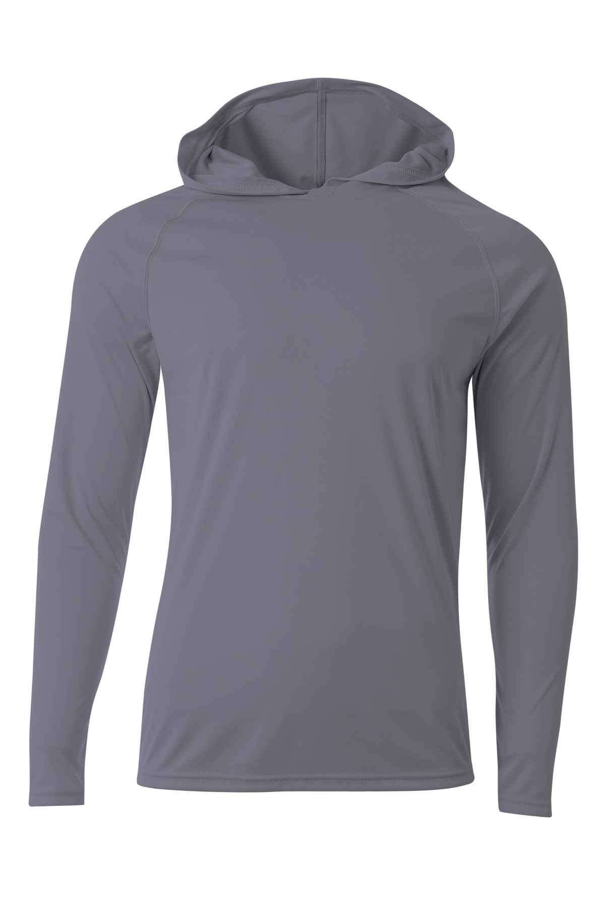 A top choice for sports and exercise, this hooded long sleeve tee combines a comfortable fit with performance features such as moisture wicking and sun protection. 4-ounce, 100% recycled poly interlock Moisture-wicking Stain release Odor-resistant Snag-resistant UPF rating of 44+ Raglan sleeves Reinforced shoulder seams for durability Double-needle coverstitching on hem Tag-free label
