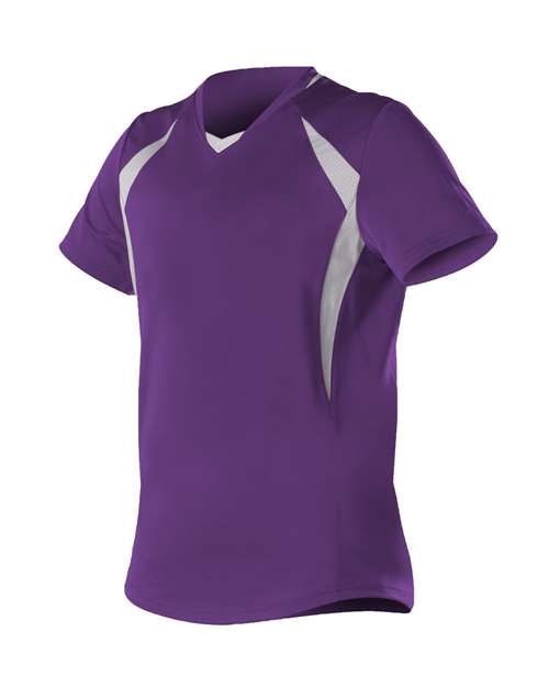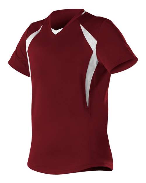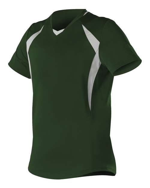 - Contrasting mesh inserts, modified neck placket and black collar