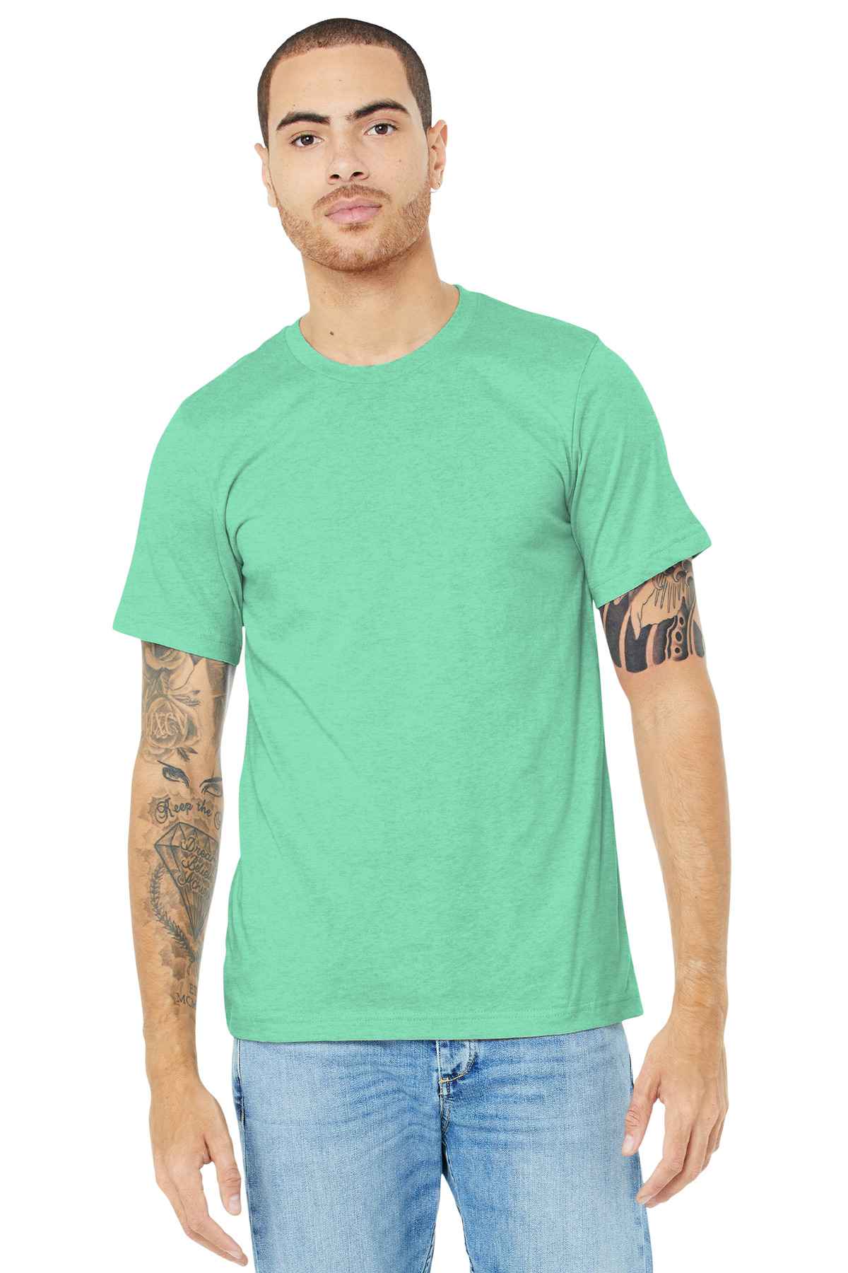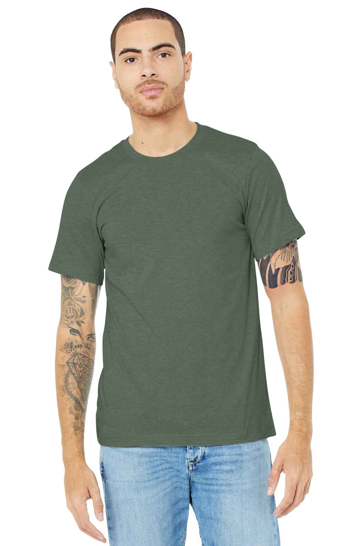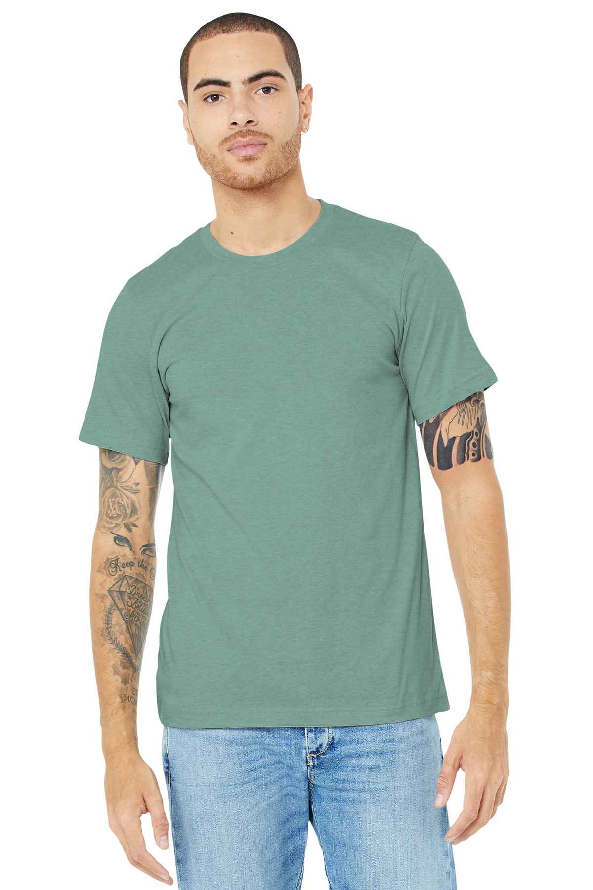Retail fit Tear-away label Side seamed Shoulder taping Athletic Heather/Black Heather: 4.2-ounce, 90/10 Airlume combed and ring spun cotton/poly, 32 singles Heather CVC/Solid CVC Blend Colors: 52/48 Airlume combed and ring spun cotton/poly Prism: 99/1 Airlume combed and ring spun cotton/poly