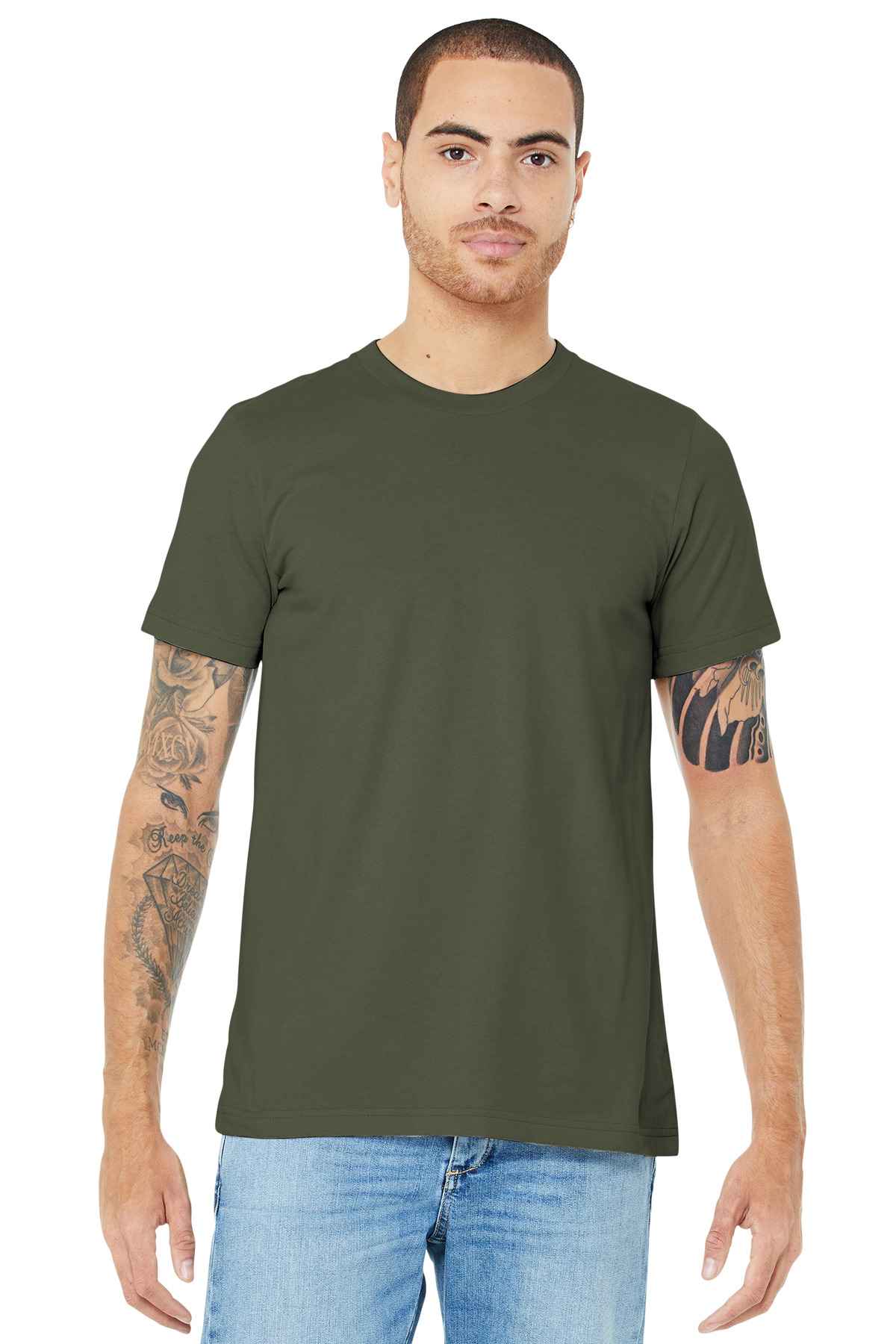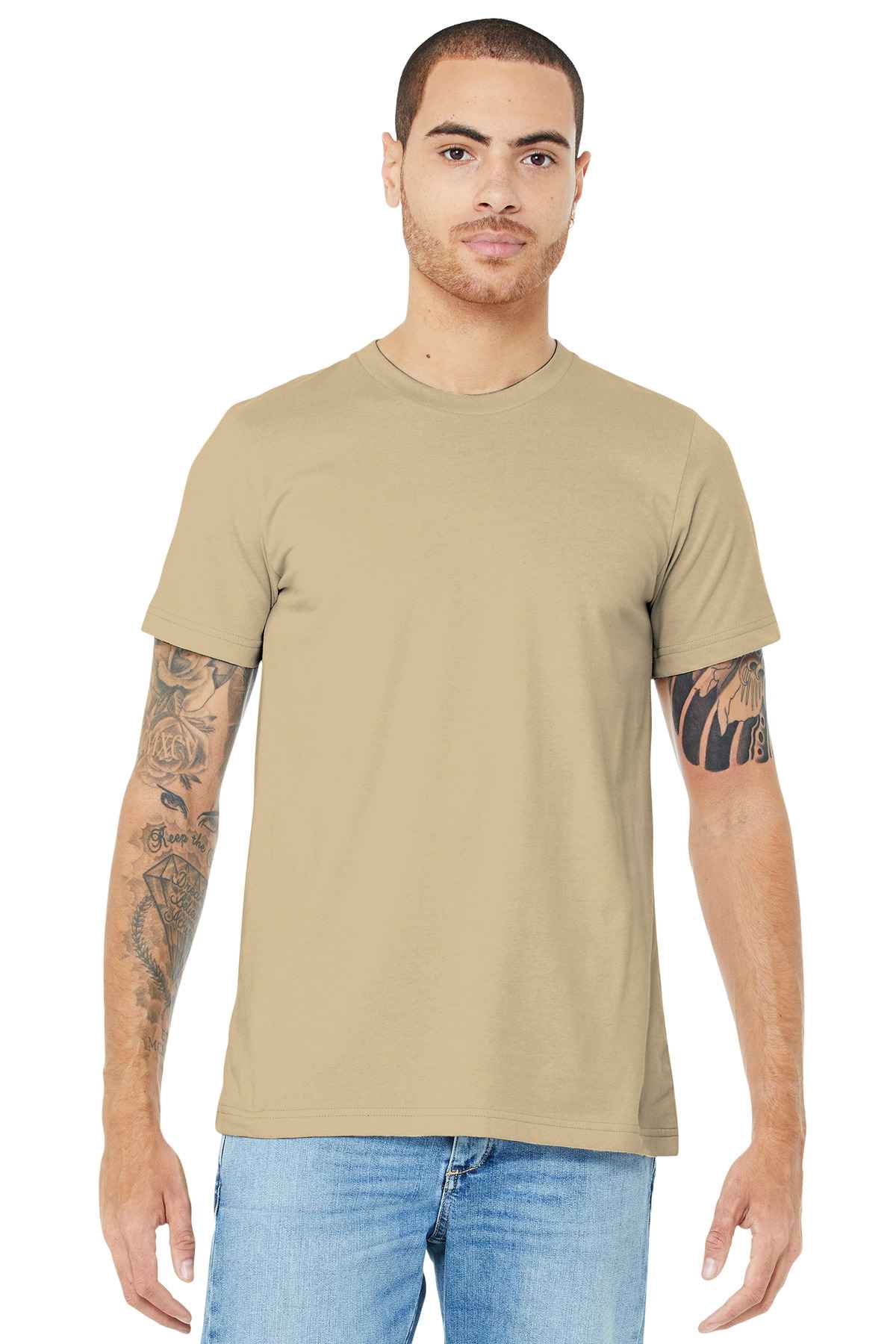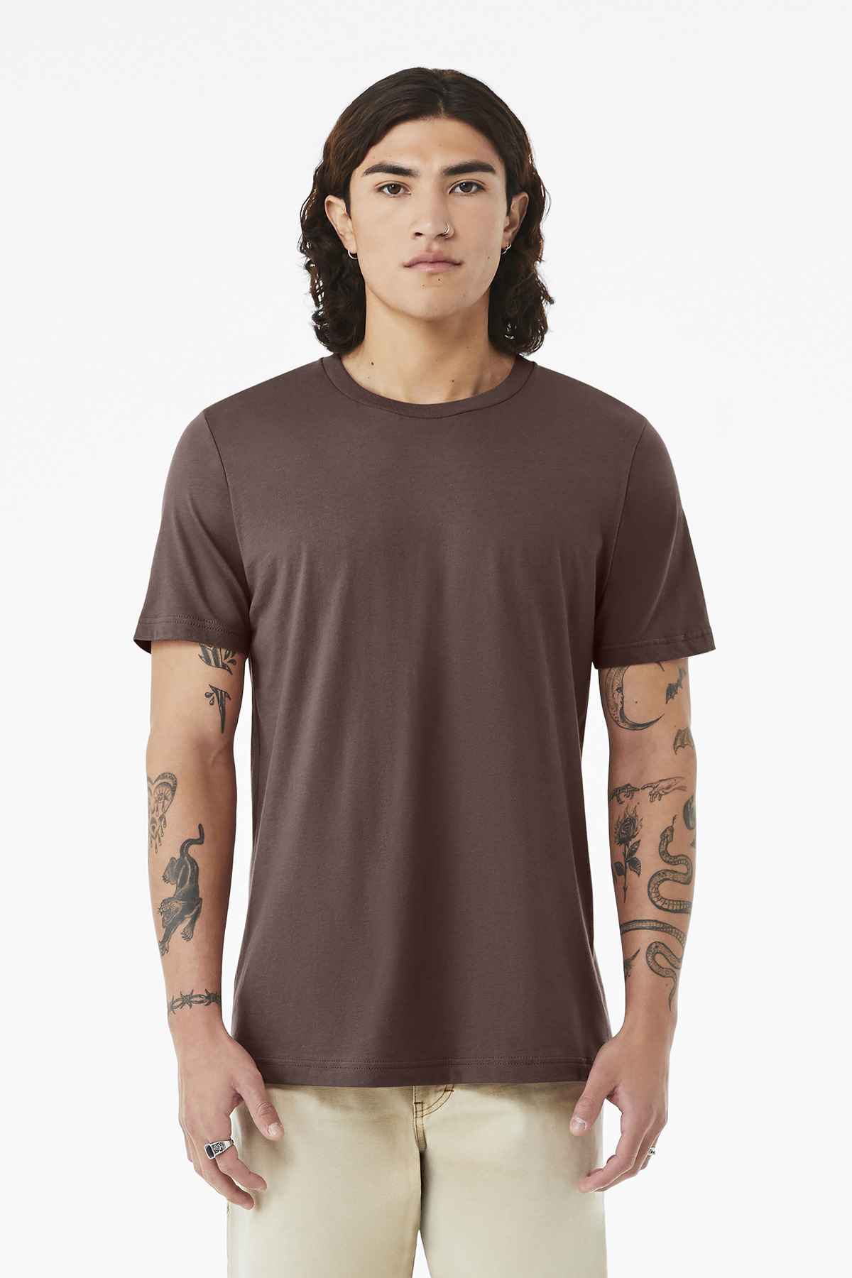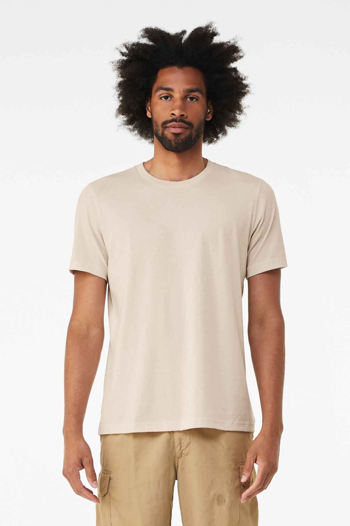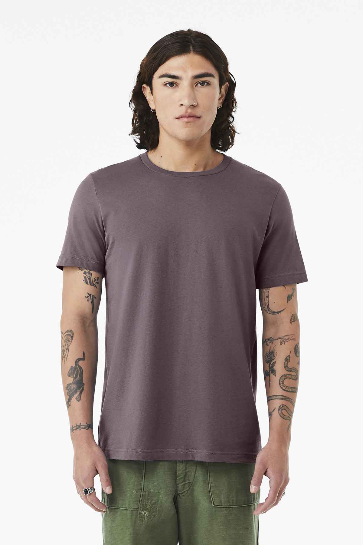 Retail fit Tear-away label Side seamed Shoulder taping Solid Colors: 4.2-ounce, 100% Airlume combed and ring spun cotton, 32 singles Ash: 99/1 Airlume combed and ring spun cotton/poly Athletic Heather/Black Heather: 90/10 Airlume combed and ring spun cotton/poly Heather CVC/Blend Colors: 52/48 Airlume combed and ring spun cotton/poly Prism: 99/1 Airlume combed and ring spun cotton/poly
