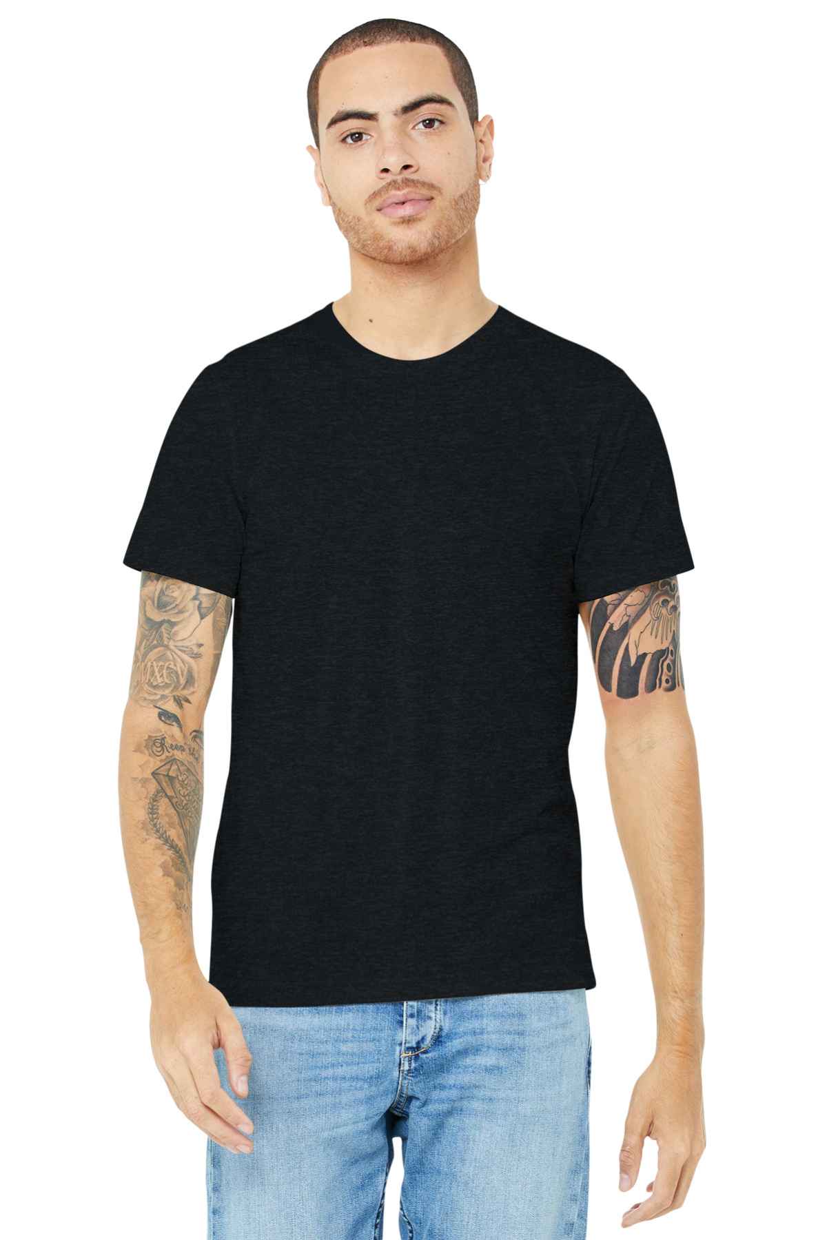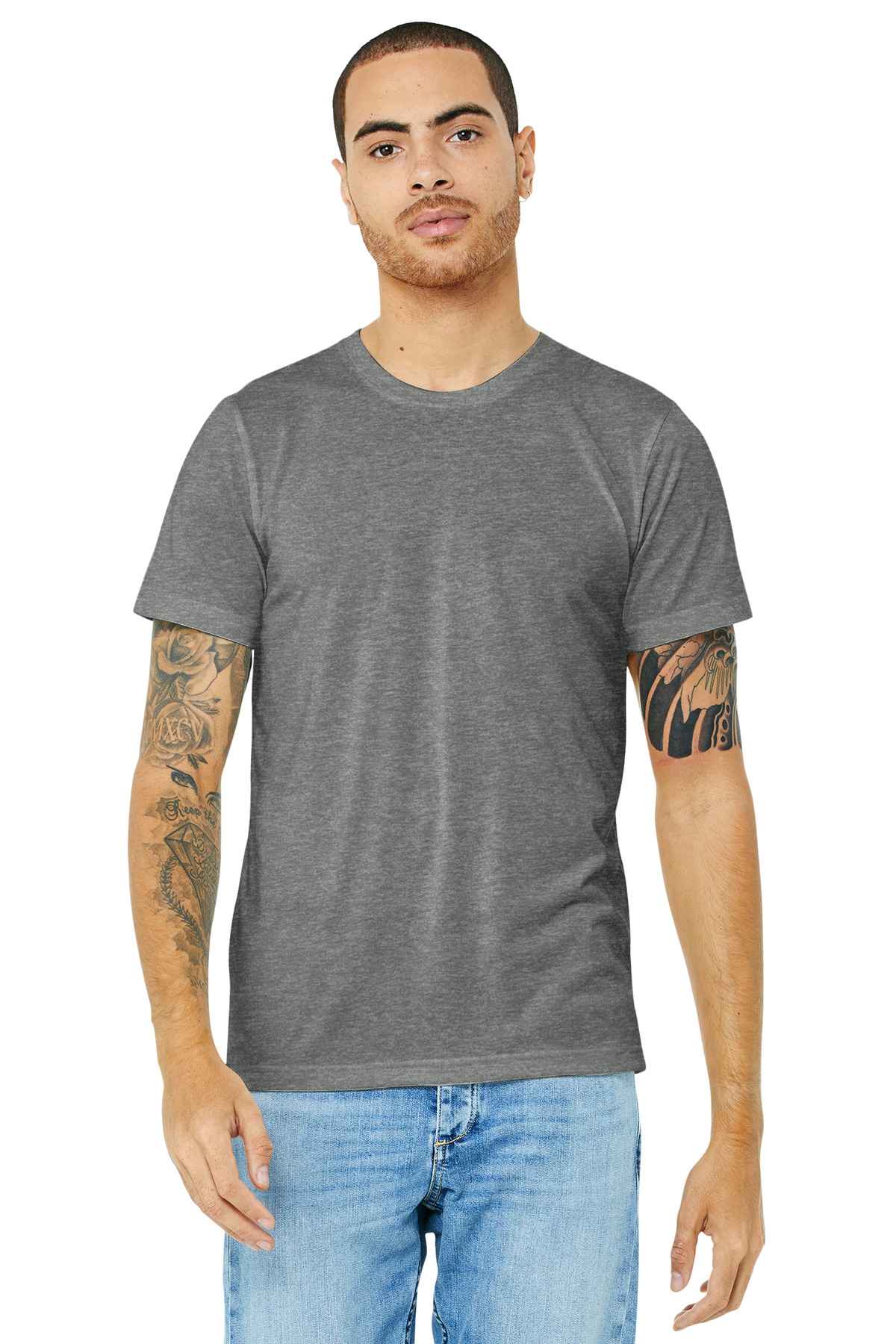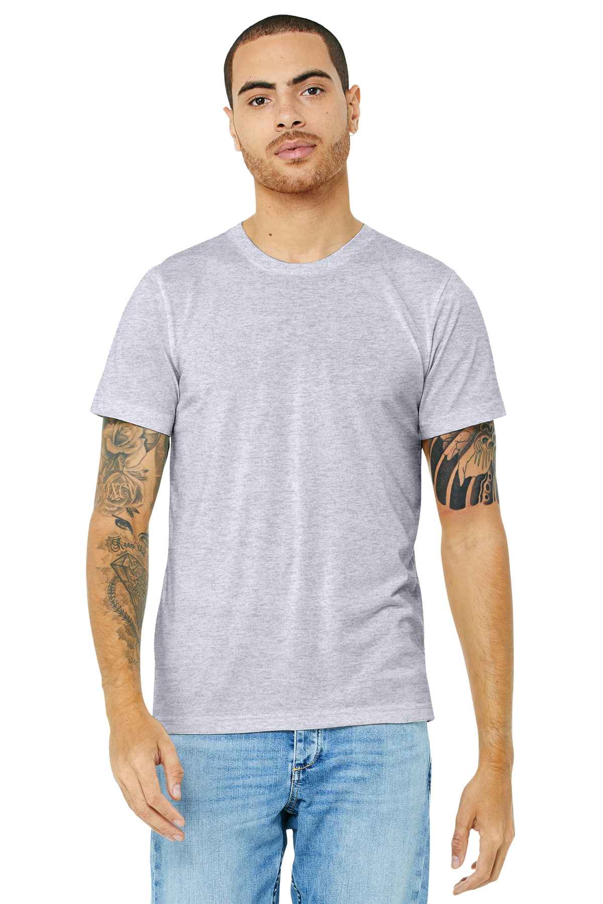 Retail fit Tear-away label Side seamed Solid Colors: 4.2-ounce, 100% Airlume combed and ring spun cotton, 32 singles Athletic Heather: 90/10 Airlume combed and ring spun cotton/poly Heather CVC Colors: 52/48 Airlume combed and ring spun cotton/poly Made in the USA of imported materials