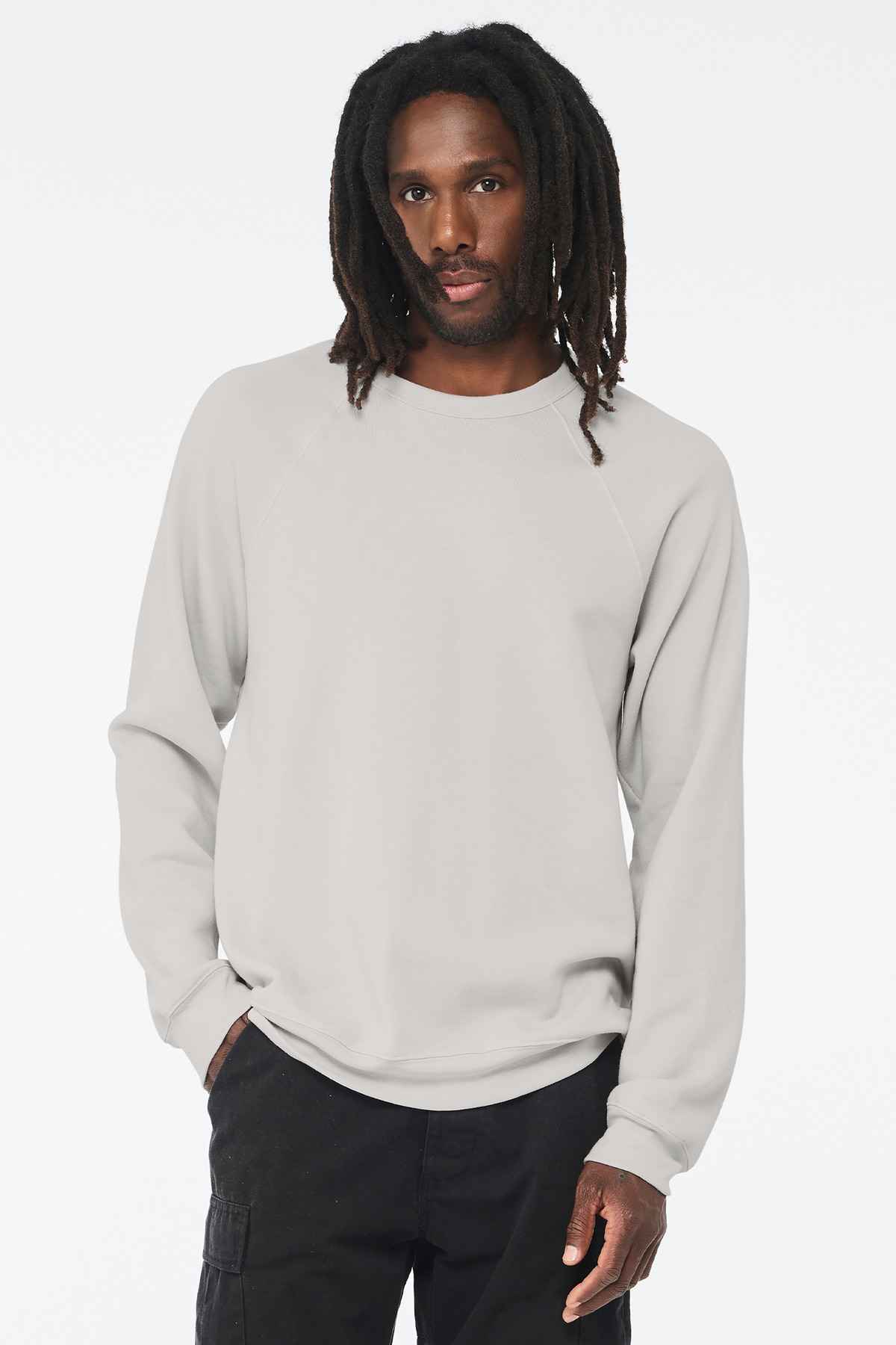 Retail fit Tear-away label Raglan sleeves Side seamed Rib knit cuffs and hem Solid Colors and Heather Colors: 8-ounce, 52/48 Airlume combed and ring spun cotton/poly fleece, 32 singles Triblend Colors: 8-ounce, 50/37.5/12.5 poly/Airlume combed and ring spun cotton/rayon, 32 singles Athletic Heather: 8-ounce, 90/10 Airlume combed and ring spun cotton/poly fleece, 32 singles