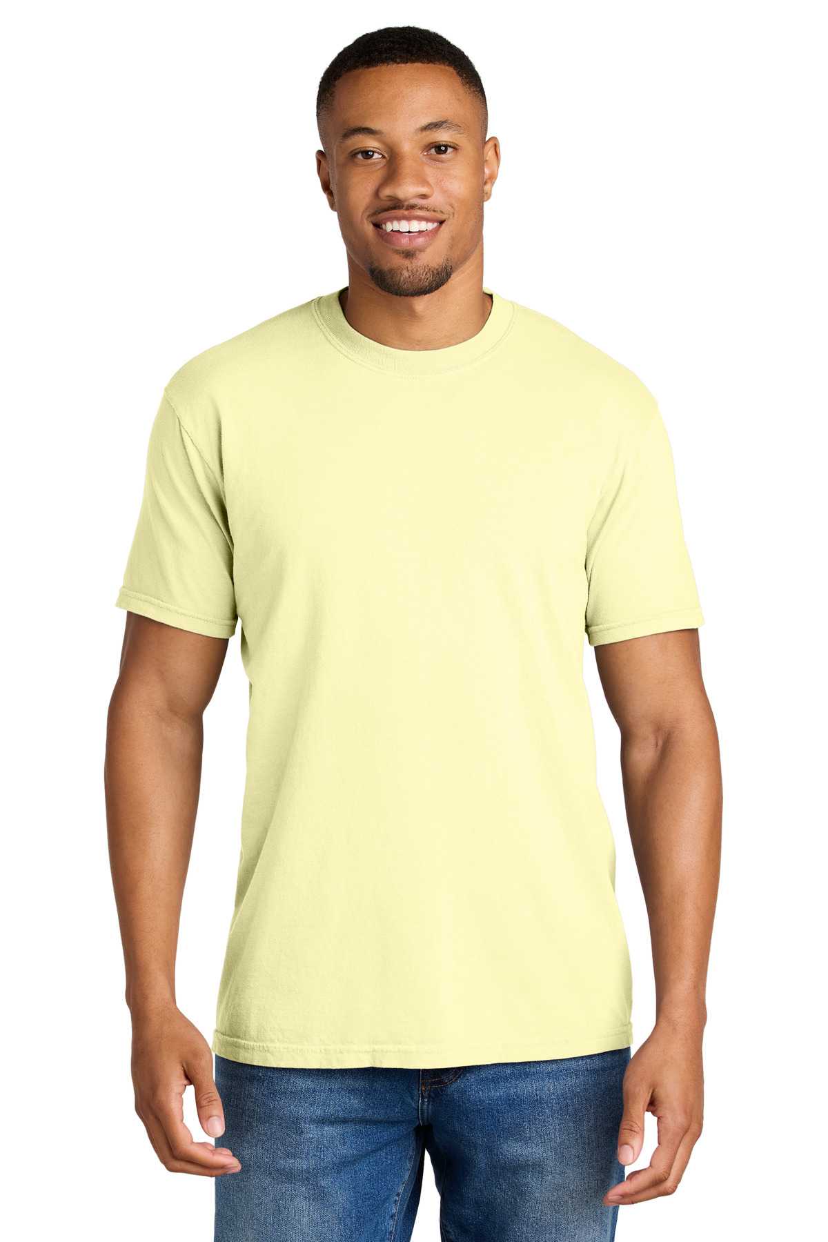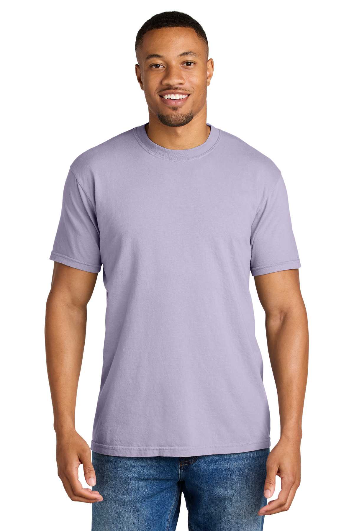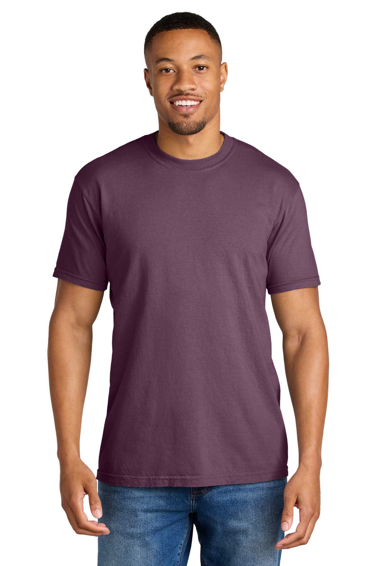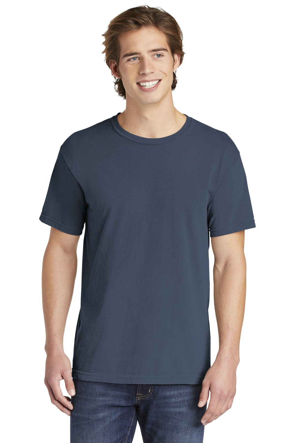 6.1-ounce, 100% US ring spun cotton Soft-washed, garment-dyed fabric Top-stitched, classic width rib collar Twill-taped neck and shoulders Twill label Relaxed fit, seamless body Double-needle collar and bottom hems The garment-dying process infuses each garment with unique character. Please allow for slight color variation in production and washing. Special consideration must also be taken when printing white ink on garment-dyed cotton.
