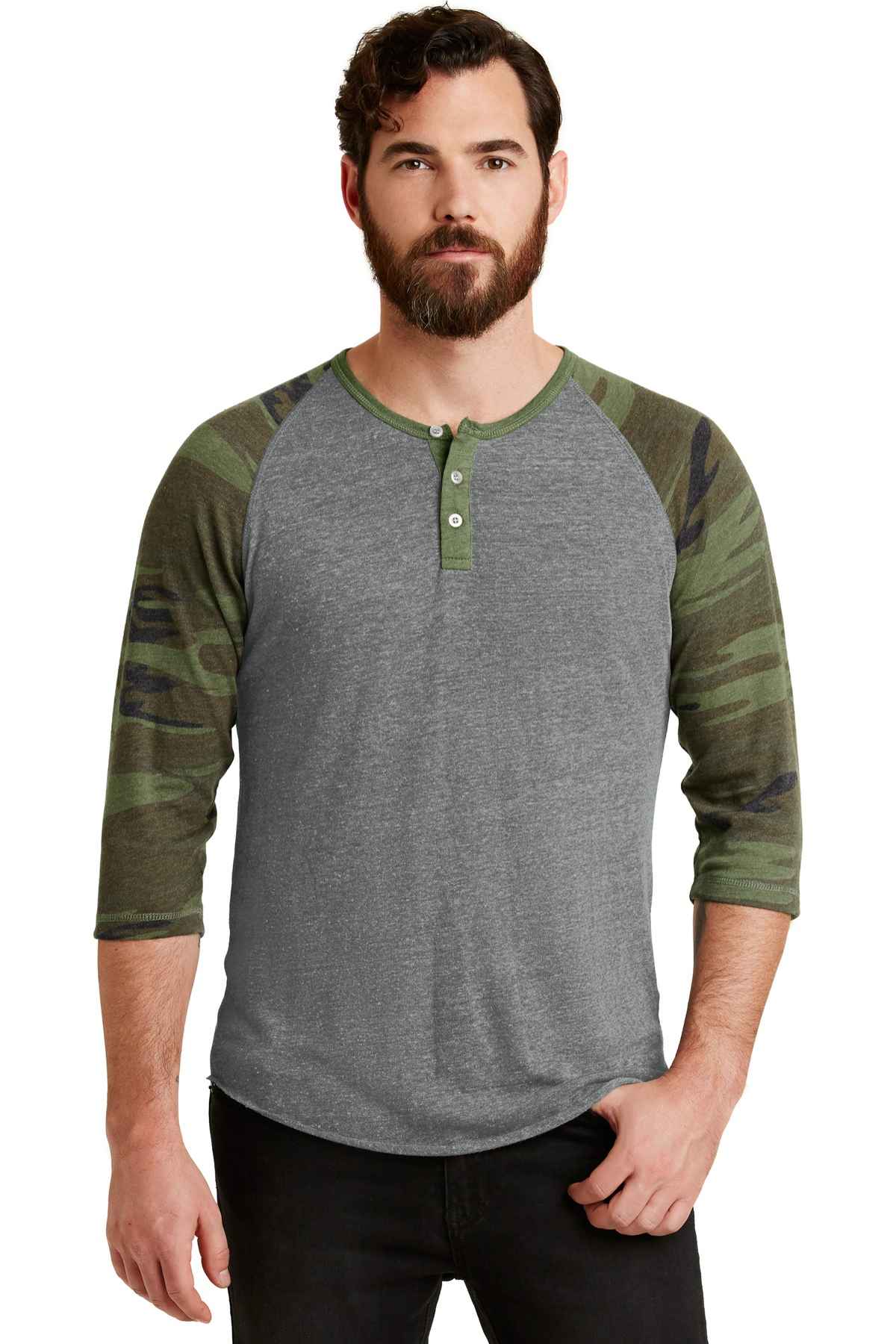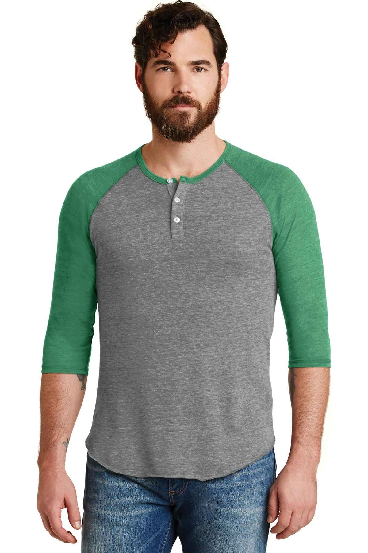 Retro never goes out of style with this best-selling 3/4-sleeve henley. Features a slightly rounded hem and contrast sleeves and placket. 4.13-ounce, 50/38/12 poly/cotton/rayon 50% polyester (6.25% recycled), 38% cotton (6.25% organic), 12% rayon Slim fit 3-button placket Raglan sleeves Slight shirttail hem Eco-Jersey fabric infuses each garment with unique character. Please allow for slight color variations. Alternative Apparel reserves the right to prohibit the addition to any Alternative Apparel product any mark, name, design or logo that does not meet the high standards of the brand. Please contact your sales representative with questions. These products may not be resold without embellishment.