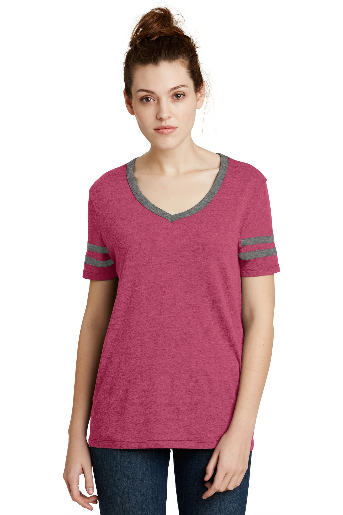Exclusive Style! It's your favorite sports jersey in a relaxed t-shirt form. Sleeve striping and contrast collar evoke a nod to athleticism. 4.4-ounce, 50/50 cotton/poly Relaxed fit Tear-away label Contrast bound neckline, mitered at center front Contrast stripes on sleeves Vintage 50/50 fabric infuses each garment with unique character. Please allow for slight color variations. Alternative Apparel reserves the right to prohibit the addition to any Alternative Apparel product any mark, name, design or logo that does not meet the high standards of the brand. Please contact your sales representative with questions. These products may not be resold without embellishment.