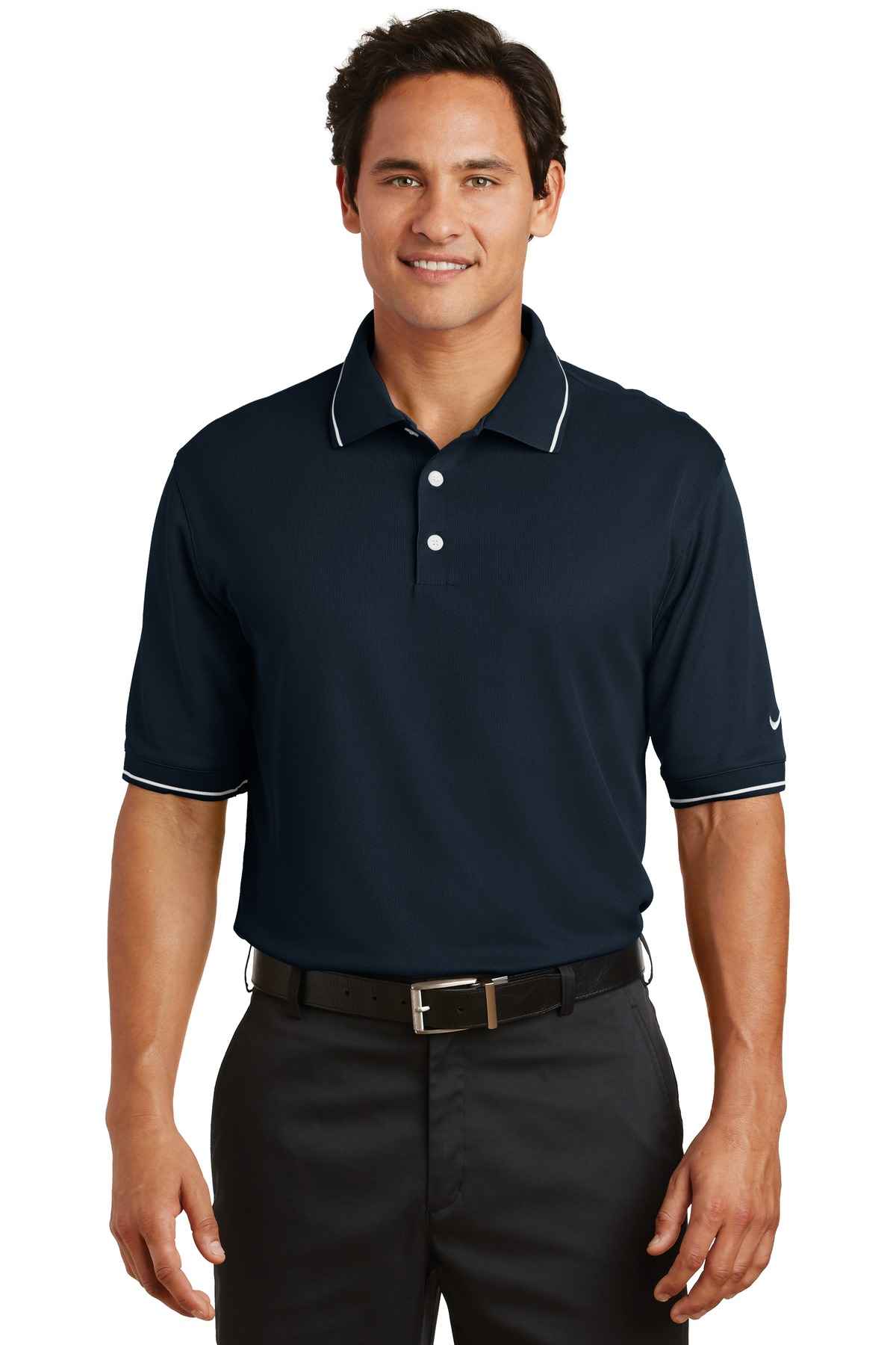 Nike Golf is known for classic polos engineered to take comfort to the next level. The Dri-FIT fabric technology delivers superior moisture management, while the stitch-trimmed shoulder panels and gussets make a distinctive difference. Flat knit collar and cuffs. Three-button placket. Pearlized buttons are selected to complement the shirt color. The contrast Swoosh design trademark is embroidered on the left sleeve. Made of 4.7-ounce, 100% polyester Dri-FIT fabric.