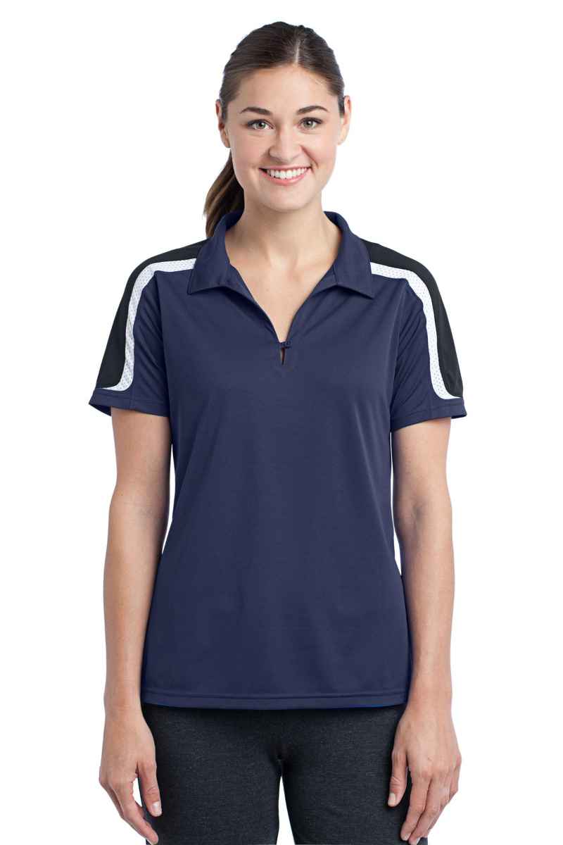 Three colors on the shoulders. Smooth, snag-resistant and breathable. | 3.8-ounce, 100% polyester tricot 100% polyester mesh insets at shoulders and sleeves Self-fabric collar Taped neck Tag-free label 1-button placket with a dyed-to-match button Mesh insets at shoulders and sleeves Set-in, open hem sleeves