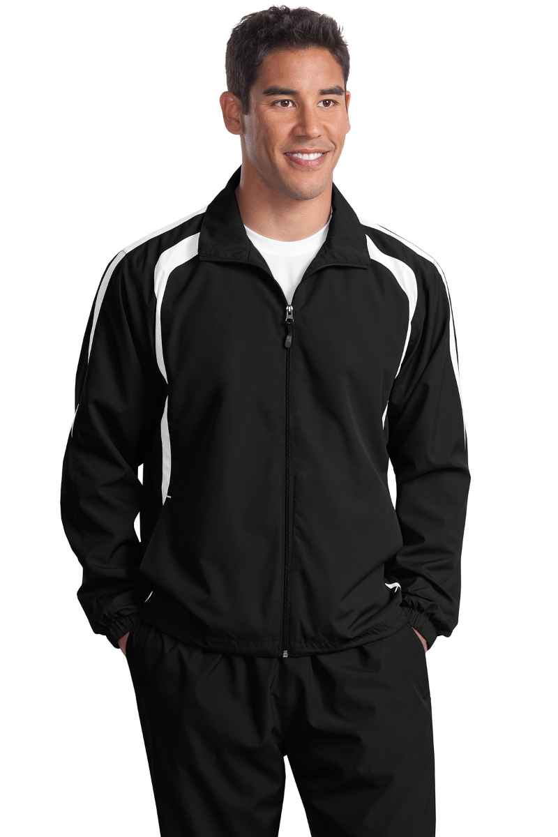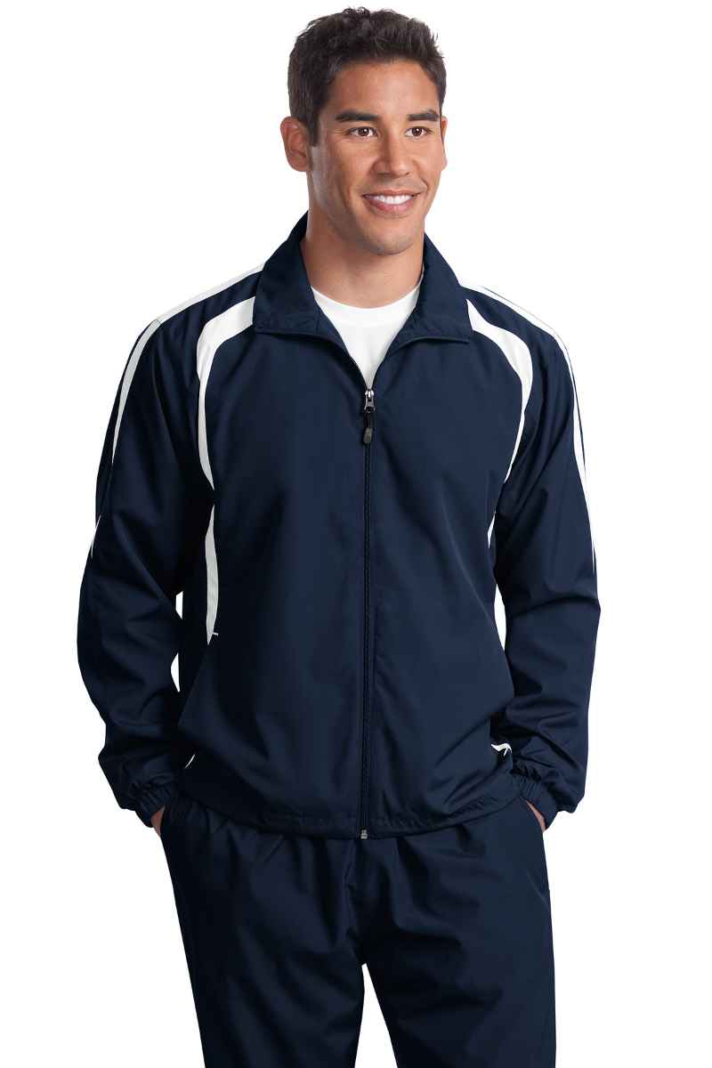 A lightweight top layer, this water-repellent jacket takes on unpredictable weather with athletic colorblocking, superb functionality and exceptional breathability. | 100% polyester shell 100% polyester jersey lining with mesh insets at gussets for added breathability Articulated elbows for greater mobility Half elastic, half self-fabric cuffs for comfort Side pockets Port Pocket at left chest for easy embroidery access Drawcord hem with toggles