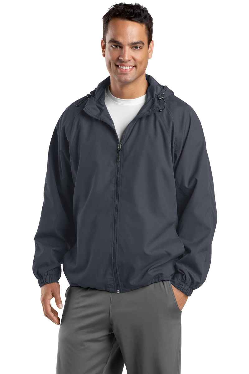 A hit on or off the field, this water-repellent jacket is comfortable, stylish and quiet. Availab le for adults and youth, this favorite has a sporty hood and raglan sleeves. It also offers an unrestrictive fit and provide lightweight weather protection. | 100% polyester shell 100% polyester jersey lining with mesh insets at gussets for added breathability Three-panel hood with drawcord and toggles Front slash pockets Articulated elbows for greater mobility Half elastic, half self-fabric cuffs for comfort Drawcord hem with toggle Port Pocket at left chest for easy embroidery access