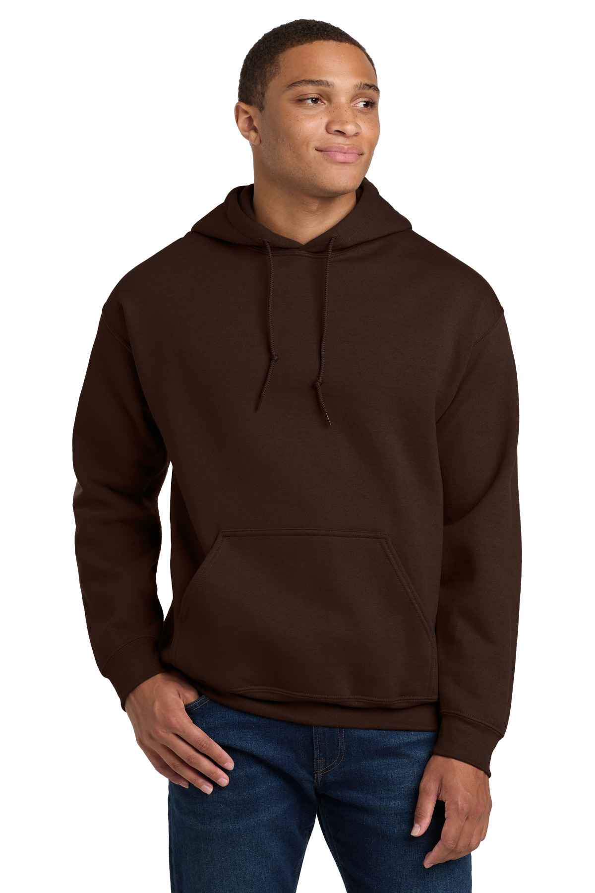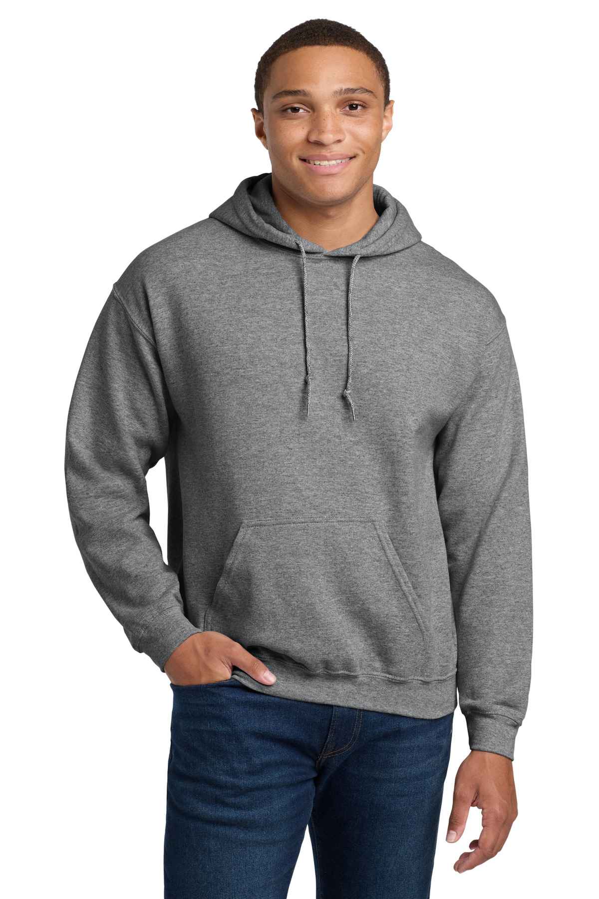 | 8-ounce, 50/50 cotton/poly 60/40 poly/cotton (Heathers) Double-needle stitching at waistband and cuffs Double-lined hood with dyed-to-match drawcord 1x1 rib knit cuffs and waistband with spandex Front pouch pocket Safety Green is compliant with ANSI/ISEA 107 high-visibility standards Recycled, high-performing black tear-away label Please note: This product is transitioning from tear-away labels to recycled, high-performing black tear-away labels. Your order may contain a combination of both labels.