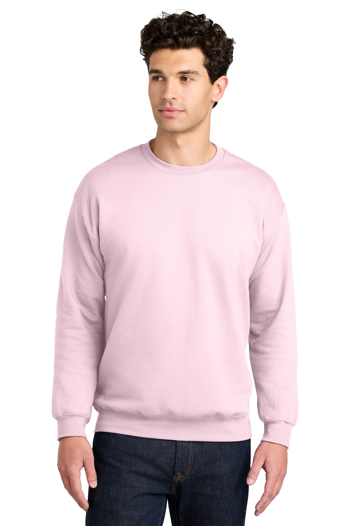 8.4-ounce, 80/20 ring spun cotton/poly 75/25 ring spun cotton/poly (Sport Grey) 50/50 ring spun cotton/poly (Dark Heather) Two-end ring spun cotton face fabric 1x1 rib knit with spandex cuffs and bottom band Dropped shoulder Double-needle topstitching throughout Tubular body Classic fit Recycled, high-performing black tear-away label Please note: This product is transitioning from tear-away labels to recycled, high-performing black tear-away labels. Your order may contain a combination of both labels.