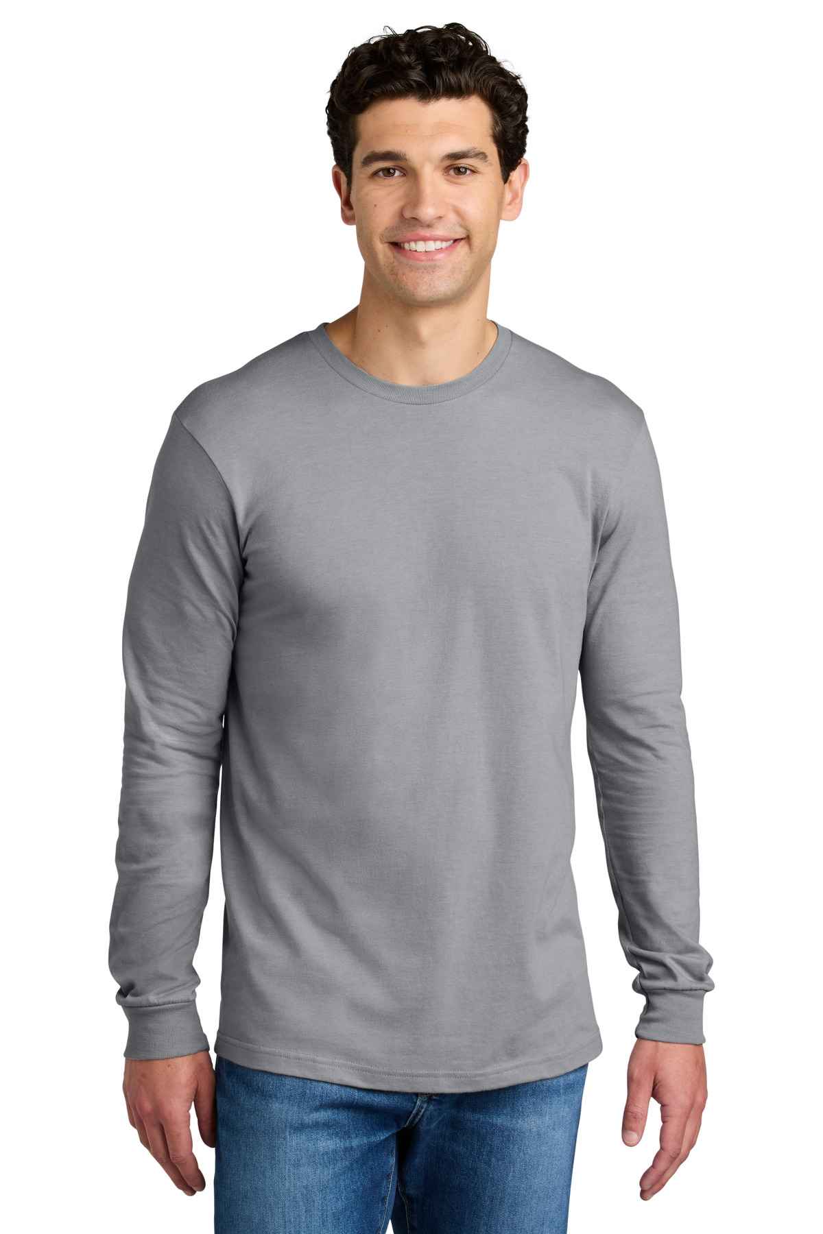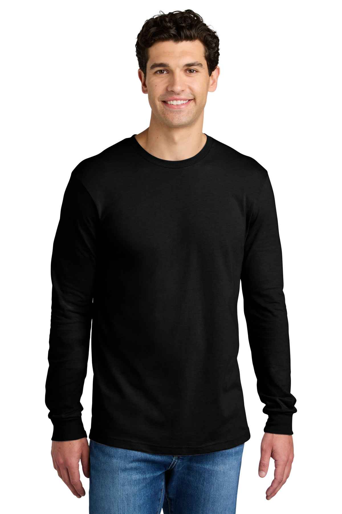 4.6-ounce, 60/40 ring spun cotton/polyester CVC blend Subtle heather texture on all colors except Pitch Black and White Recycled, high-performing black tear-away label Softstyle's high stitch density fabric offers a smoother printing surface Narrow width, rib collar Taped neck and shoulders Modern classic fit, seamless body Double-needle hem Rib cuffs
