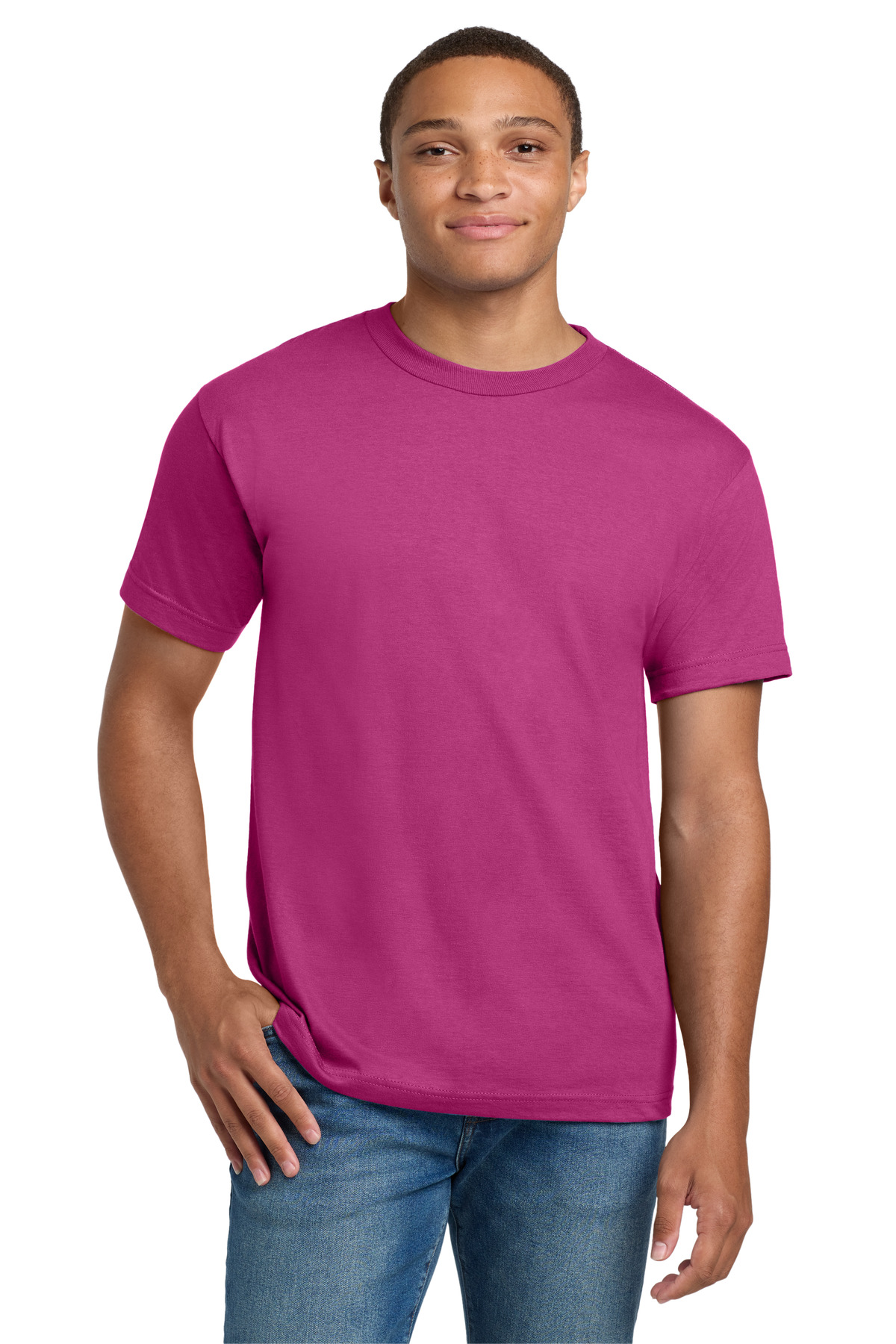 | 6.1-ounce, 100% US-grown ring spun cotton 99/1 cotton/poly (Ash) 90/10 cotton/poly (Light Steel) 60/40 cotton/poly (Heathers, Oxford Grey) Tear-away label Set-in 1x1 rib crewneck Lay-flat collar Shoulder-to-shoulder taping Relaxed fit Please note: This product is transitioning from tag-free labels to tear-away labels. Your order may contain a combination of both labels.