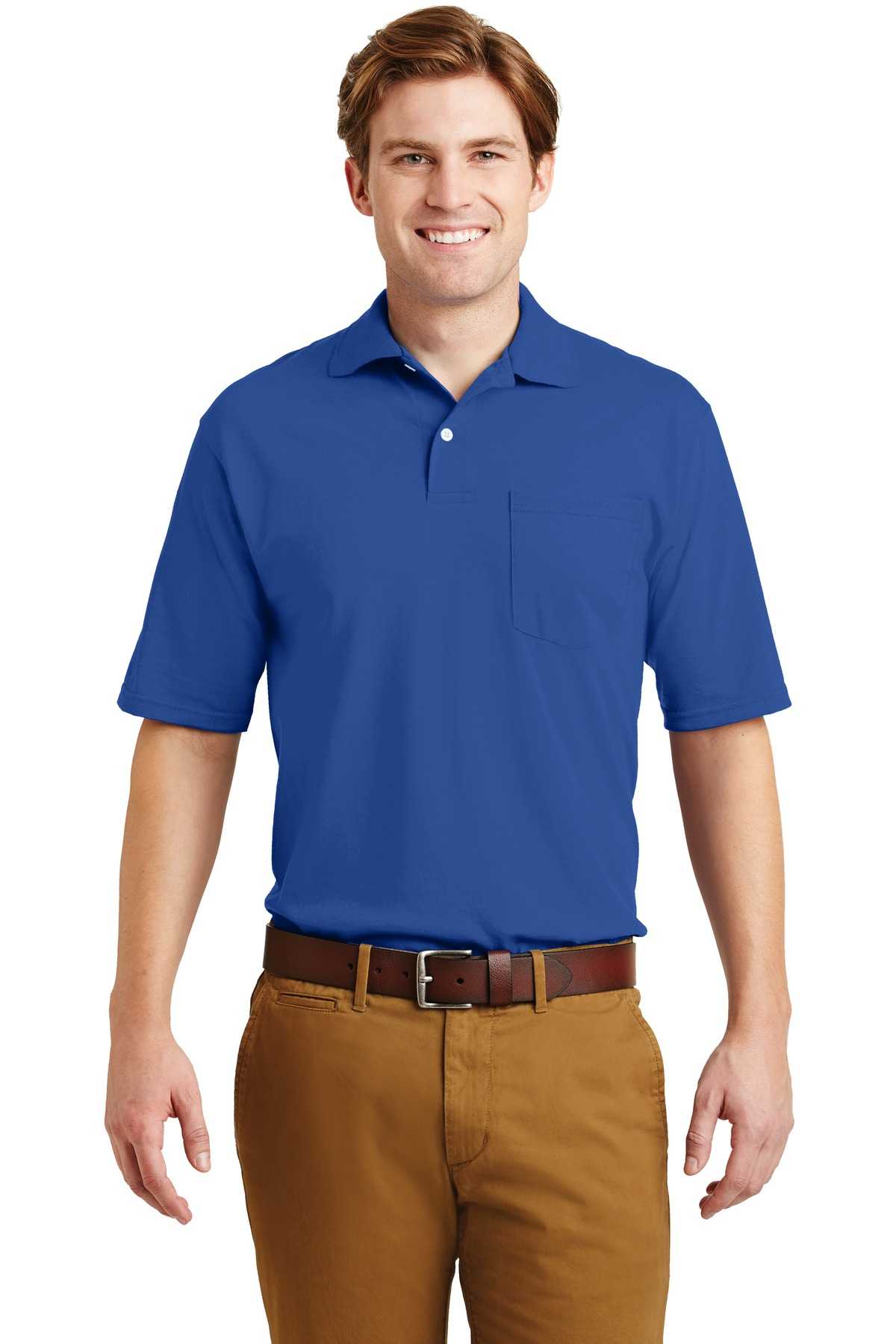 | 5.4-ounce, 50/50 cotton/poly preshrunk jersey Oxford is 47/53 cotton/poly Moisture-wicking for all day comfort Made with sustainably sourced, USA-grown cotton Tear-away label Welt knit collar that resists curling 5-point left chest pocket 2-button placket with bottom box stitch Pearlized buttons with durable cross-stitching Double-needle sleeves and hem Ash (formerly Birch)