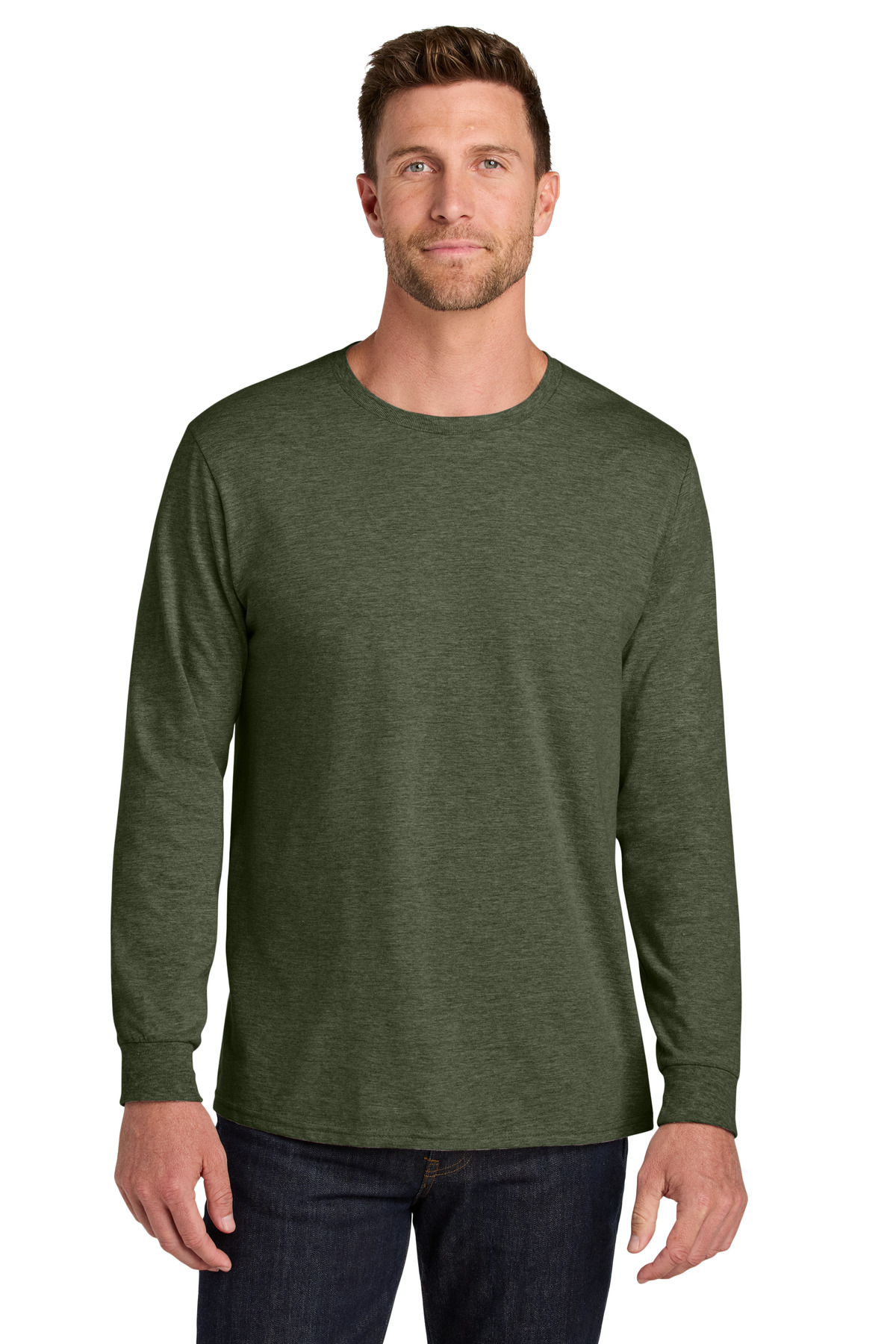 4.6-ounce, 100% ring spun cotton 60/40 CVC cotton/polyester (Heathers) 90/10 CVC cotton/polyester (Athletic Heather) Seamless 1x1 rib knit collar with clean neckline Shoulder to shoulder taping 1x1 rib knit cuffs Double-needle hem Classic fit Tear-away label