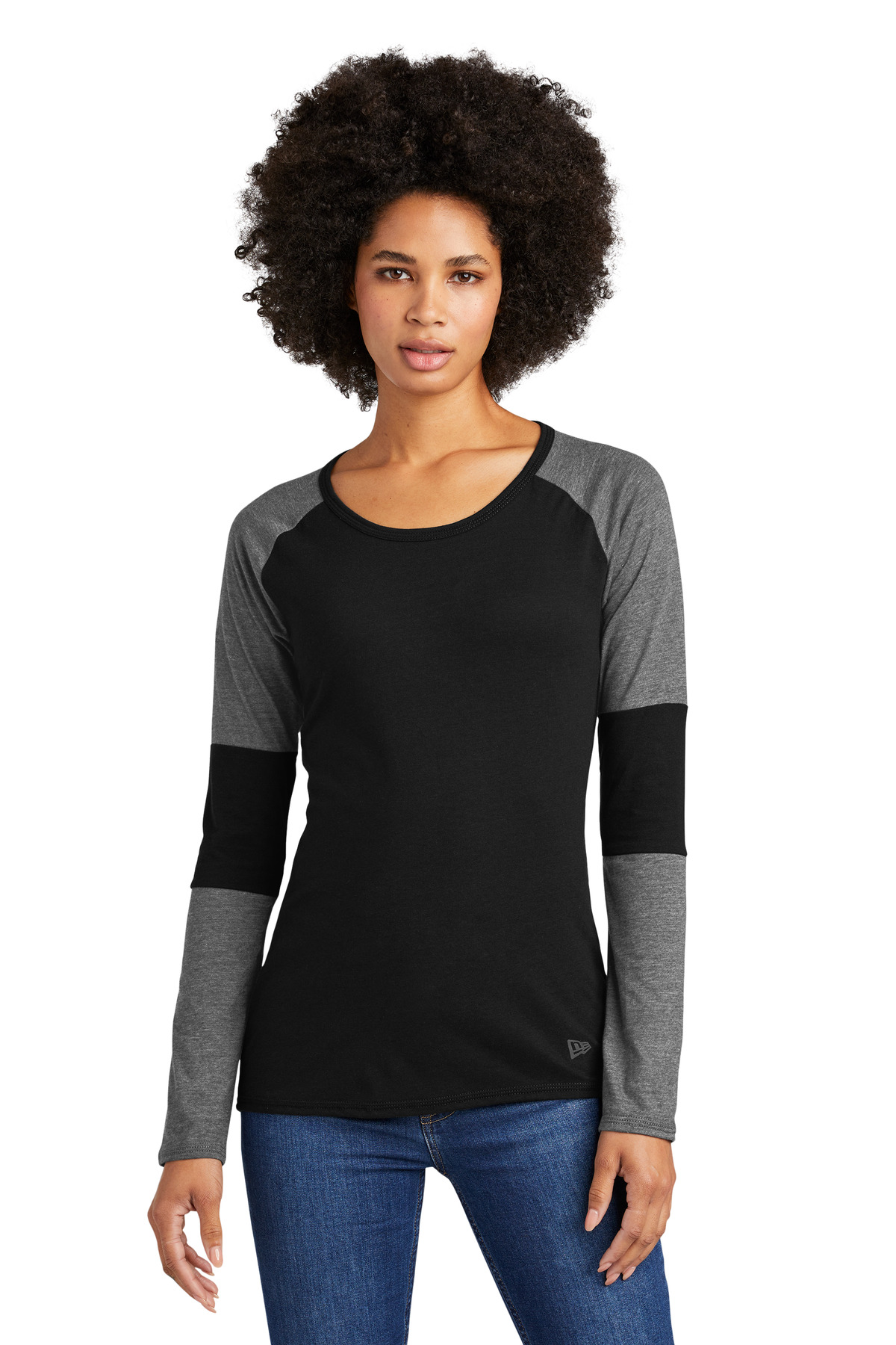 This ultra-soft baseball raglan is a modernized take on the traditional style with colorblocking and moisture-wicking performance. 4.3-ounce, 50/38/12 poly/ ring spun combed cotton/rayon, 30 singles Triple-needle stitching throughout Self-fabric neck binding Heat transfer label for tag-free comfort Contrast panels at elbows Drop tail hem Heat transfer New Era flag logo at hem
