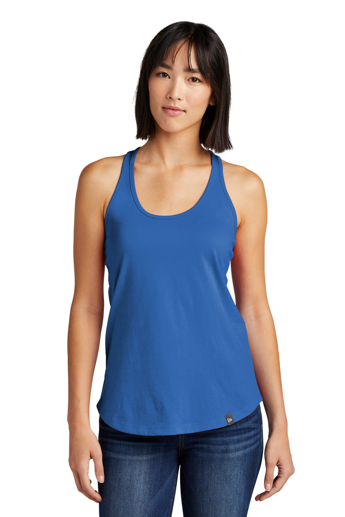 A quintessential racerback tank that can layer easily or stand on its own. 4.4-ounce, 60/40 ring spun combed cotton/poly, 30 singles Heat transfer label for tag-free comfort Contrast binding at neck and arm openings (Twists) Woven New Era badge at hem