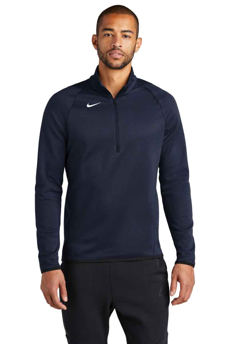 Nike has elevated this limited edition style as a year-round workout essential with incredibly warm, insulating Therma-FIT fabric which breathes and manages moisture. The design includes a zip-through collar, elastic binding at the open cuffs and the open drop tail hem. The contrast heat transfer Swoosh design trademark is on the right chest. Made of 7.4-ounce, 60/40 recycled polyester/polyester Therma-FIT fabric.