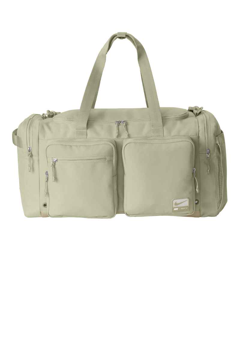 The versatile Utility Duffel 2.0 keeps your gear organized and ready for any active day. 100% polyester with PU coating for durability Constructed of at least 65% recycled material Two-way zippered main body with interior mesh slip pocket Zippered end pocket for shoes or soiled items Thermal insulated zippered end pocket for supplements or hydration Gusseted end slip pocket for dual hydration carrying Front exterior zippered pockets Haul handles at top and side Adjustable shoulder strap Contrast welded Swoosh logo Dimensions: 22'l x 11'w x 12'h Capacity: 3,112 cu. in./51 L Note: Bags not intended for use by children 12 and under.
