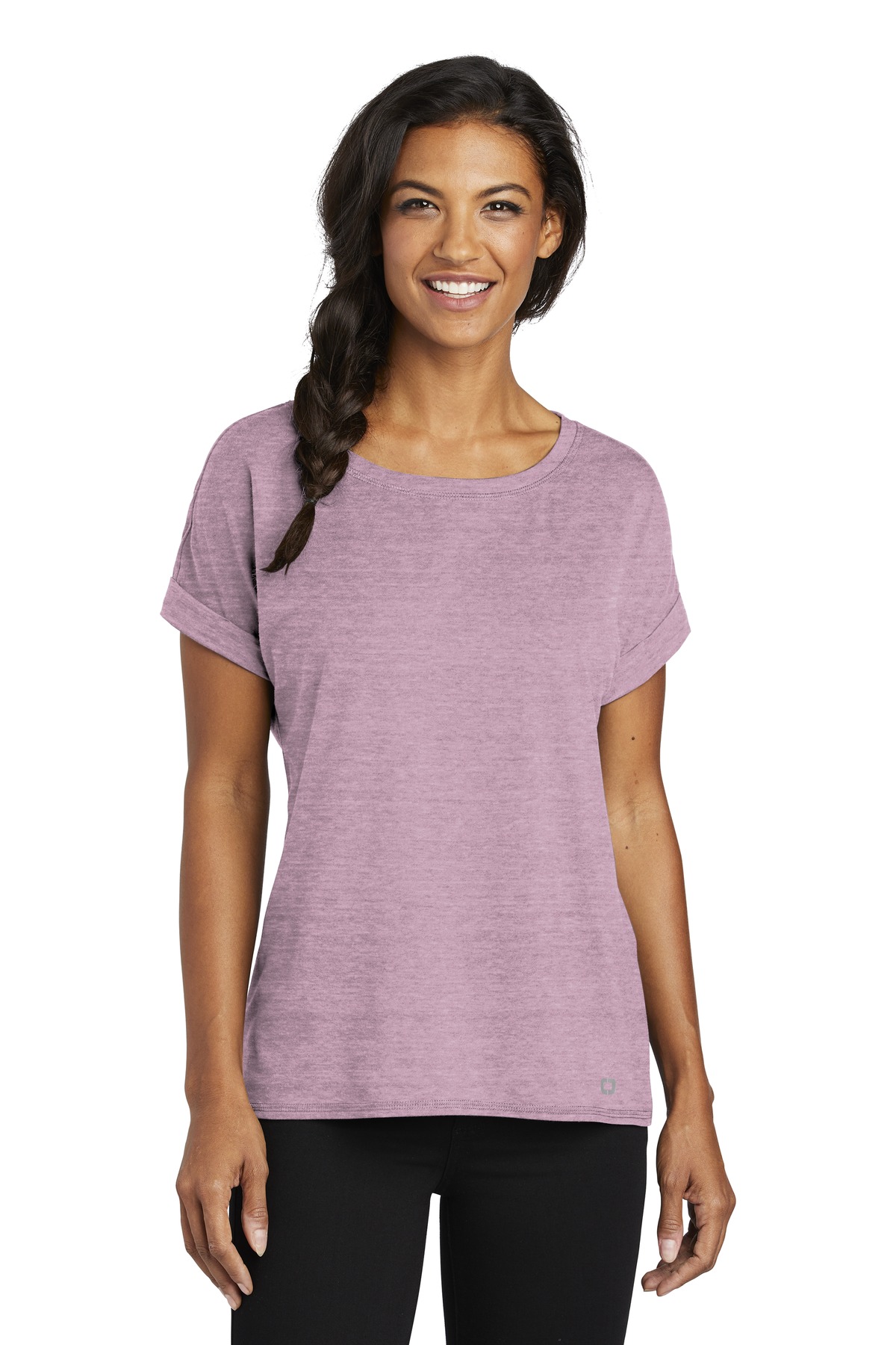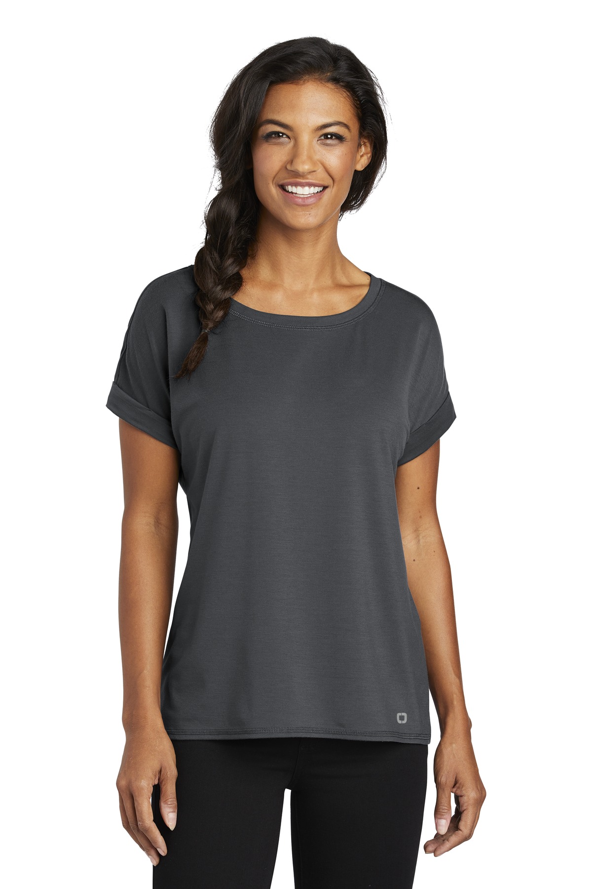 Designed to easily transition from the gym to the street, this ultrasoft tee has a flattering, relaxed fit. 4.1-ounce, 75/20/5 poly/TENCEL Lyocell/spandex jersey with stay-cool wicking technology OGIO heat transfer label for tag-free comfort Self-fabric neck Rolled and tacked dolman sleeves Iridescent heat transfer O on front left hem Curved hem TENCEL¿ is a trademark of Lenzing AG.