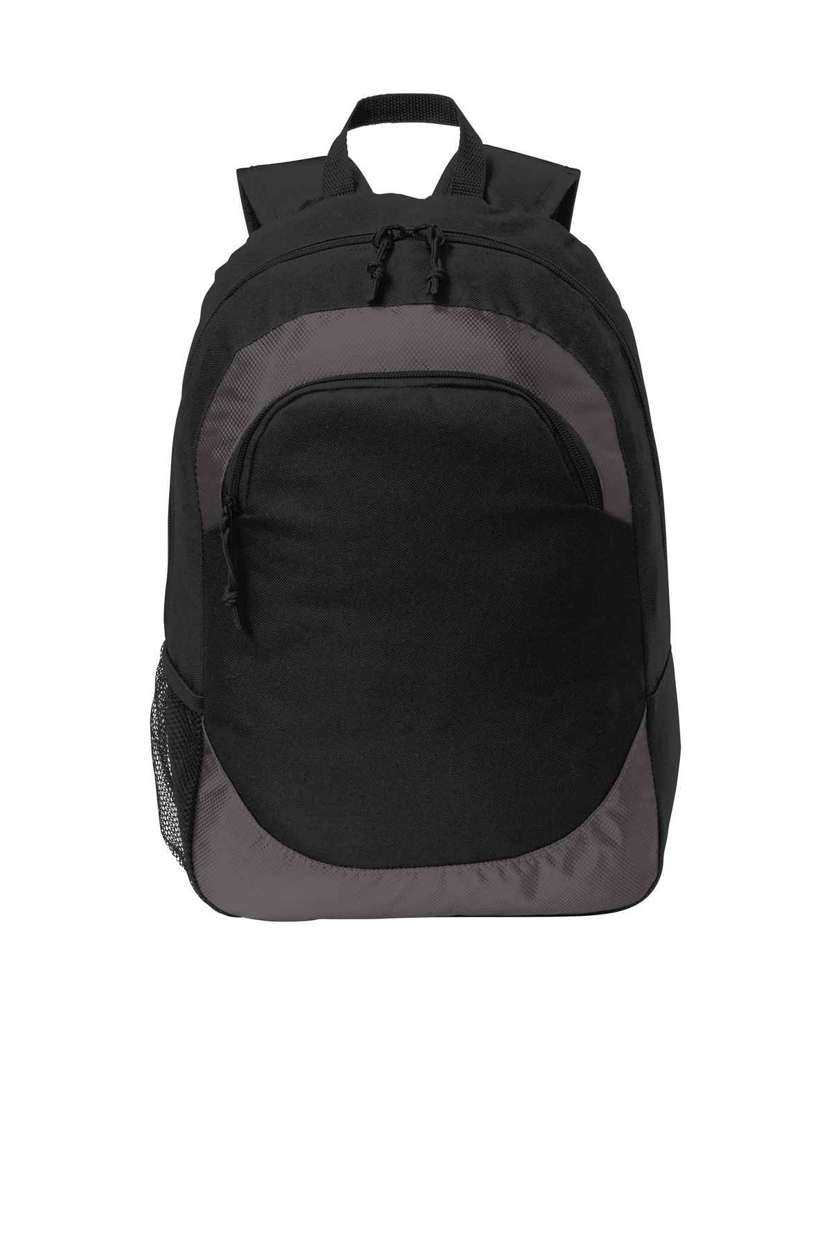 600D poly canvas; 200D poly fishnet dobby Front zippered pocket Interior laptop pocket in main compartment Lightly padded shoulder straps Side mesh pocket Laptop sleeve dimensions: 12.5'h x 12.75'w; fits most 15' laptops Dimension: 17.5'h x 12.75'w x 6.25'd; Approx. 1,395 cubic inches Note: Bags not intended for use by children 12 and under.