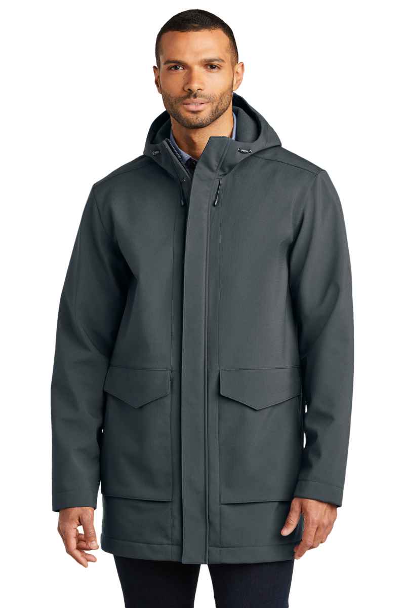 94/6 polyester/spandex woven mini ripstop shell bonded to a water-repellent, breathable film insert, 100% polyester brushed tricot lining Weatherproof outer layer into which other Collective styles can be zipped and secured by snap attachments 8000MM fabric waterproof rating 5000G/M2 fabric breathability rating Slightly longer length Attached, adjustable hood with locking drawcord Full-length interior storm flap Full-length exterior storm flap with snap closure Two-way center front zipper Flap-and-snap, dual-entry patch pockets with zippered side pockets Water protection method: laminate film and durable water-repellent finish (DWR) 3-in-1 system jacket: interior center front zip-in/zip-out attachment point and 3 snap points to layer additional Collective pieces