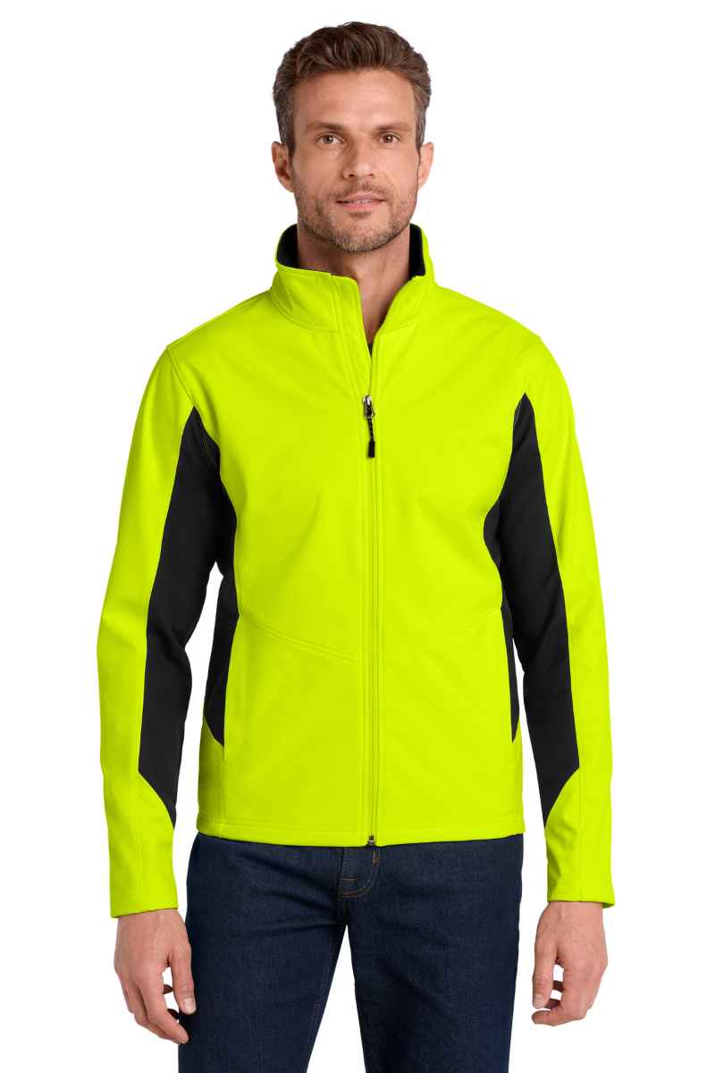 Pair warmth with style--for a great price. Athletic-inspired colorblocking on the sides and sleeves give this soft shell up-to-date appeal, while a polyester microfleece interior keeps you comfortable. | 100% polyester woven shell bonded to a water-resistant film insert and a 100% polyester microfleece lining 1000MM fabric waterproof rating 1000G/M2 fabric breathability rating Wind-resistant, water-repellent Front zippered pockets Rental-friendly