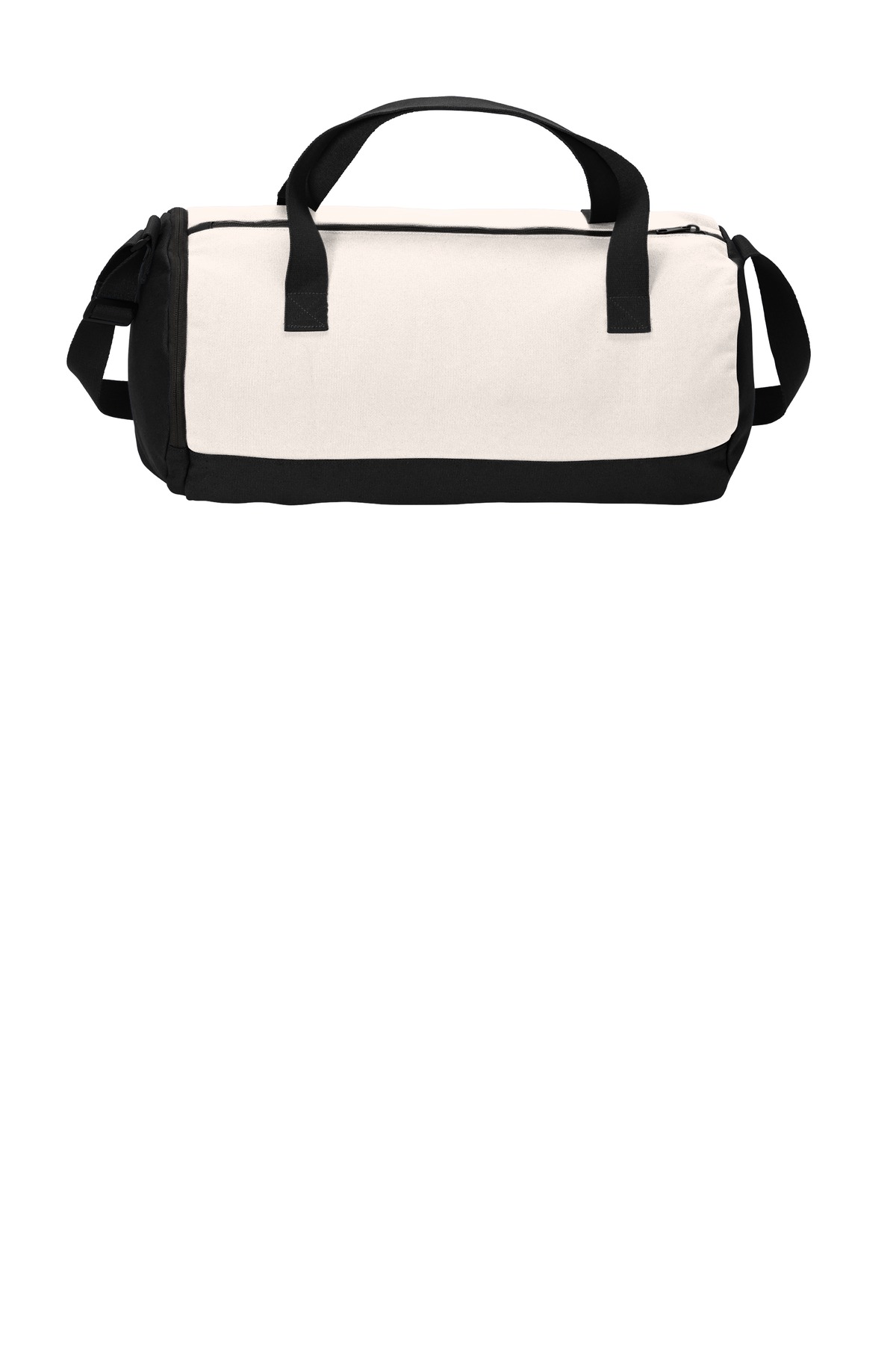 This soft, sturdy canvas duffel has plenty of room for sporting gear or weekend getaway essentials. 16-ounce, 100% cotton canvas Large main compartment Dyed-to-match cotton webbing handles and zippers Adjustable, dyed-to-match cotton webbing shoulder strap Zippered end pocket Dimensions: 11'h x 20'w x 11'd; Approx. 2,420 cubic inches Note: Bags not intended for use by children 12 and under.