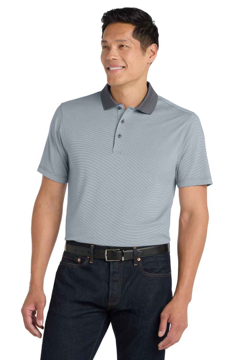 This made-to-move polo has plenty of stretch and wicks moisture for superb performance. Two-color fine stripes instantly upgrade your day-to-day look. | 5.3-ounce, 94/6 poly/spandex yarn-dyed fine stripe jersey Solid contrast flat knit collar 3-button placket with dyed-to-match buttons Open hem sleeves Side vents