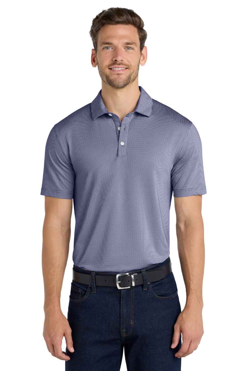 For a corporate or casual look that is both fashionable and functional, these polos have a unique micro-check gingham pattern and release soil, wick moisture and resist snags. 4.4-ounce, 90/10 poly/spandex Soil release Moisture-wicking Snag-resistant Self-fabric collar with collar stand 3-button placket Side vents