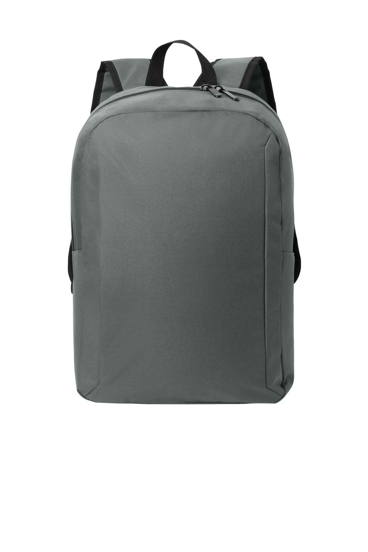 300D polyester twill with PVC backing Zippered main compartment Front zippered pocket Matte metal zipper pulls Adjustable shoulder straps Web carry handle Laptop sleeve dimensions: 11.8'h x 11.8'w; fits most 16' laptops Dimensions: 16.75'h x 12'w x 6'd Capacity: 1,282 cu. in./21 L Weight: 1.2 lbs./0.5 kg Note: Bags not intended for use by children 12 and under.