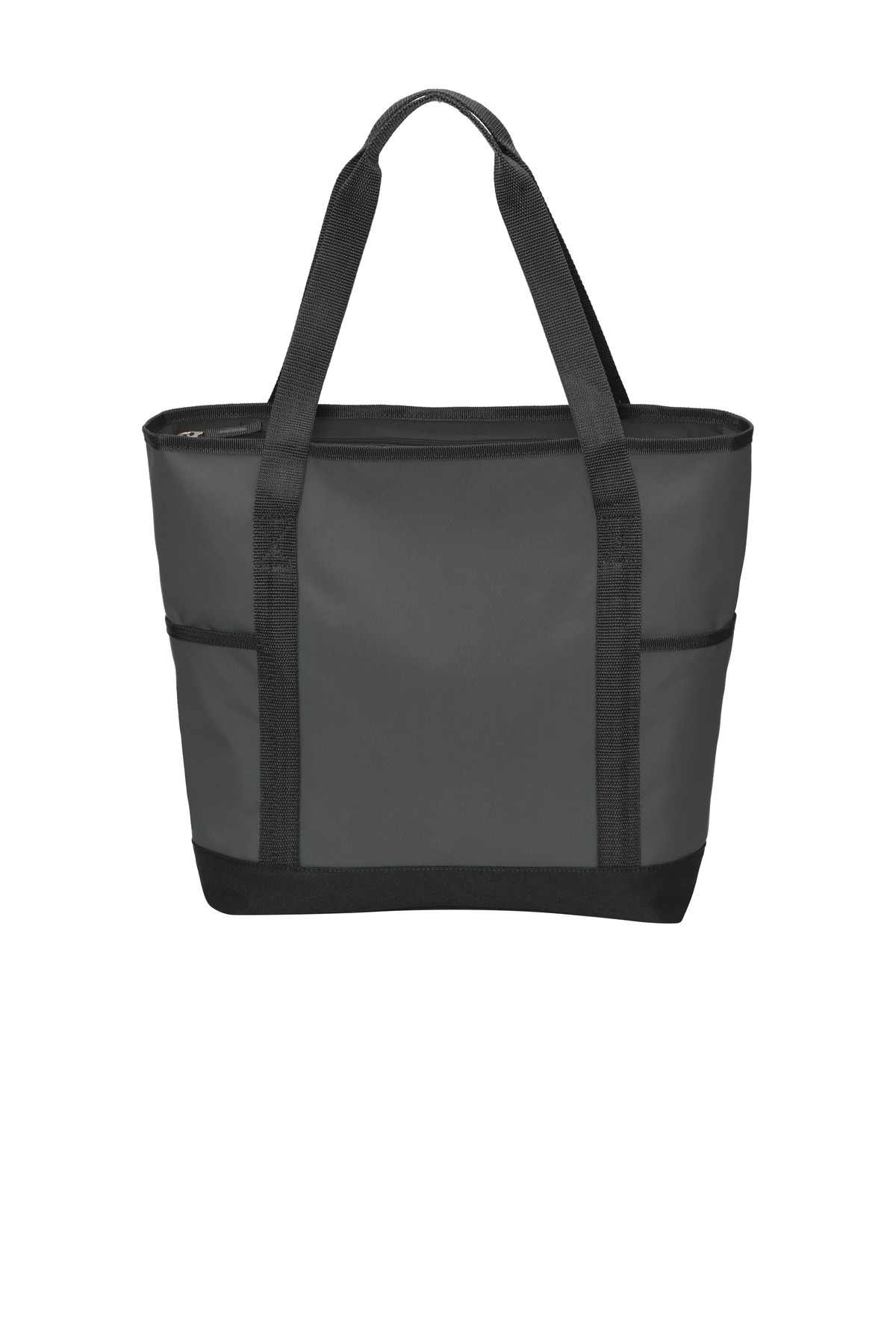 This sturdy zip-top tote keeps everything organized for an easier commute. 300 denier polyester canvas body, 600 denier polyester canvas bottom Zippered top closure Reinforced over-the-shoulder web handles Dimensions: 14'h x 13'w x 6.5'd, Approx. 1,183 cubic inches Note: Bags not intended for use by children 12 and under. Includes a California Prop 65 and social responsibility hangtag.
