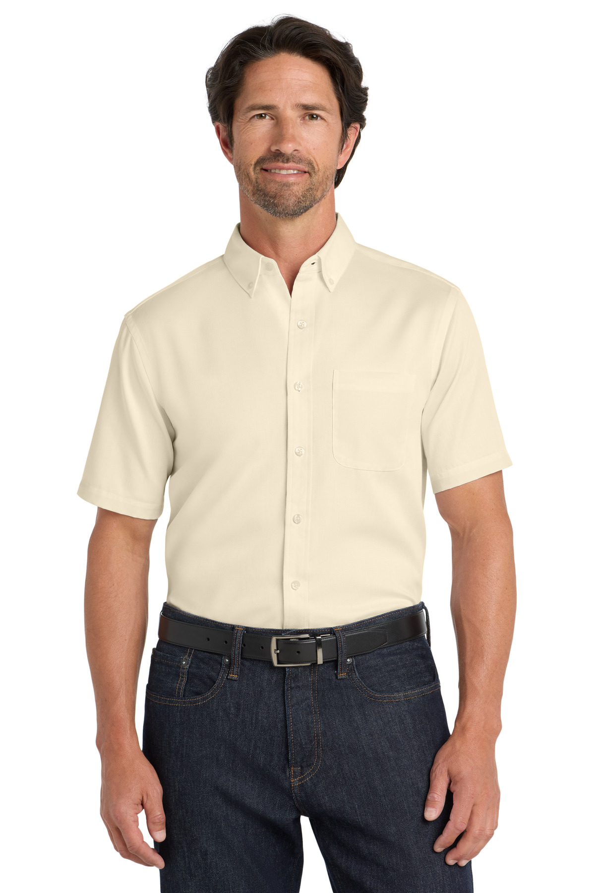 The ultimate in professional performance, this wrinkle-resistant shirt also releases stains. The soft, smooth fabric gives you a polished look that's comfortable enough for year-round wear. 4.3-ounce, 55/45 cotton/poly twill Stain release Wrinkle-resistant Button-down collar Dyed-to-match buttons Left chest pocket Back yoke with box pleat