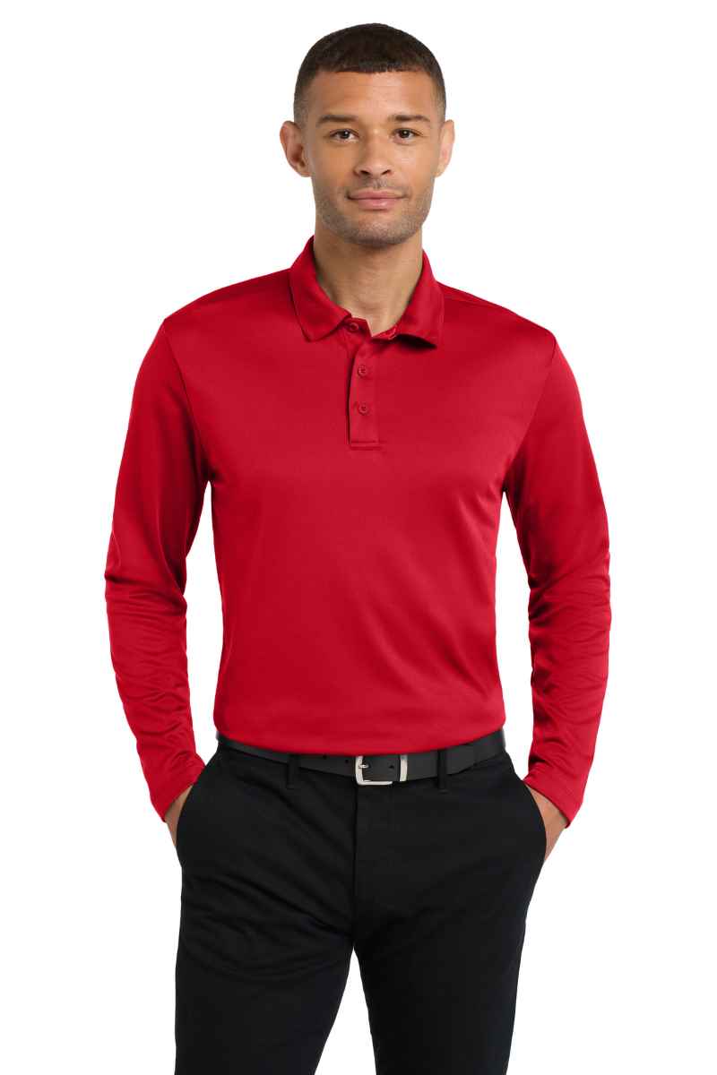 We took our legendary Silk Touch Polo and made it work even harder. The durable, easy care Silk Touch Performance Long Sleeve Polo wicks moisture, resists snags and thanks to PosiCharge ® technology, holds onto its color for a professional look that lasts. There's just no higher performing polo at this price. | 4-ounce, 100% polyester double knit with PosiCharge technology; White is 4.3-ounce for increased coverage Self-fabric collar Tag-free label 3-button placket with dyed-to-match buttons Open hem sleeves