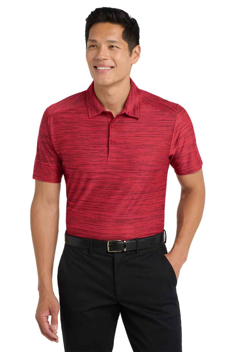 With an elevated heather look, this office-ready polo has plenty of stretch for unrestricted movement. With moisture wicking, this style also performs. 5.2-ounce, 93/7 poly/spandex drop needle jersey Self-fabric collar with collar stand Tag-free label 3-button placket Dyed-to-match buttons Self-fabric shoulder detail Open hem sleeves