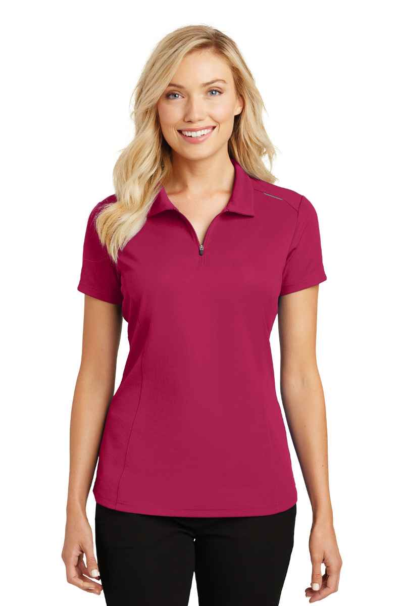 Fashioned from sleek closed-hole pinpoint mesh, this moisture-wicking, snag-resistant performance polo has eye-catching reflective details and minimal stitching for a clean look. 4.3-ounce, 100% polyester Self-fabric collar Zip placket Front seaming Reflective piecing at shoulders and center back Open hem sleeves Slightly curved hem Due to the nature of 100% polyester performance fabrics, special care must be taken throughout the printing process.