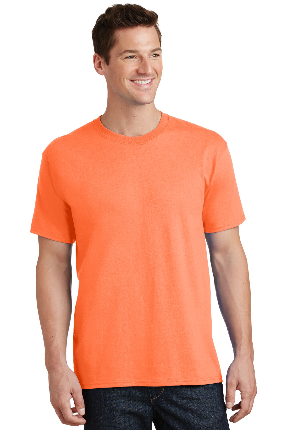 An indispensable t-shirt in our classic silhouette—with a very friendly price.| 5.4-ounce, 100% cotton 90/10 cotton/poly (Athletic Heather) 50/50 cotton/poly (Neon Blue, Neon Green, Neon Orange, Neon Yellow, Dark Heather Grey, Athletic Maroon, Heather Navy, Heather Red, Heather Royal) 98/2 cotton/poly (Ash) Removable tag for comfort and relabeling Due to the nature of 50/50 cotton/polyester neon fabrics, special care must be taken throughout the printing process.