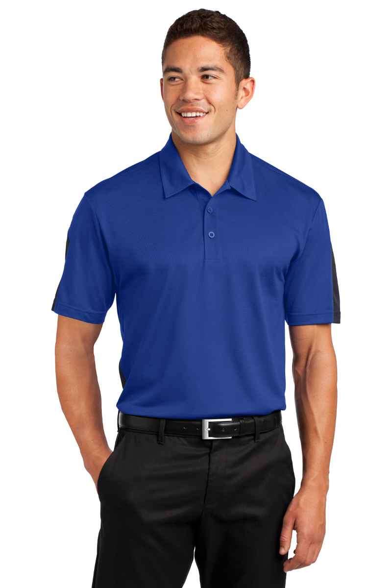 Colorblocking at the sleeves and sides, along with an understated texture, give this snag-resistant, moisture-wicking polo plenty of sporty interest. PosiCharge technology ensures colorfastness and optimal printability. | 3.4-ounce, 100% polyester mesh with PosiCharge technology Tag-free label Self-fabric collar 3-button placket with dyed-to-match buttons Set-in, open hem sleeves