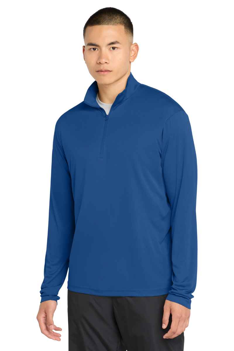 This lightweight pullover locks in color and wicks moisture. It's versatile enough for year-round wear. 3.8-ounce, 100% polyester interlock with PosiCharge technology Removable tag for comfort and relabeling Cadet collar Reverse coil zipper Set-in sleeves Open cuffs and hem