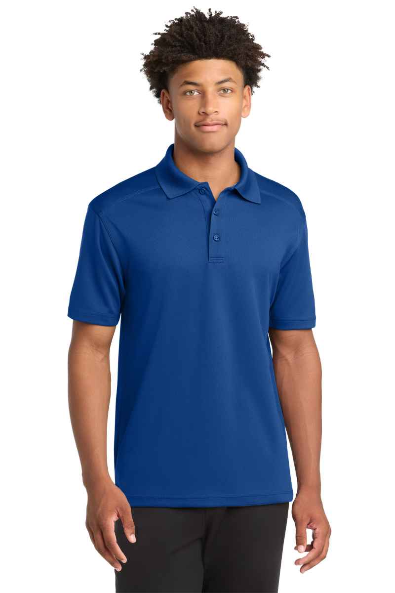 PosiCharge technology helps preserve colors and logos in a mesh that wicks moisture and resists snags. | 4-ounce, 100% polyester double mesh with PosiCharge technology Partially made from recycled coffee grounds Contrast neck taping Tag-free label Flat knit collar 3-button placket with dyed-to-match buttons Triple-needle yoke and armholes Set-in, open hem sleeves Side vents