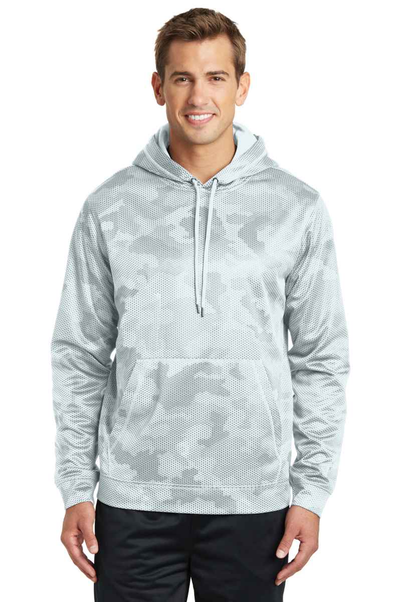 It's CamoHex to the max with an all-over sublimated digital camo print in this anti-static, moisture-wicking pullover. | 5.5-ounce, 100% polyester Three-panel hood with a solid dyed-to-match drawcord Solid self-fabric hood lining Taped neck Self-fabric cuffs and hem Front pouch pocket * Please note: This product is transitioning from woven labels to tag-free labels. Your order may contain a combination of both labels *