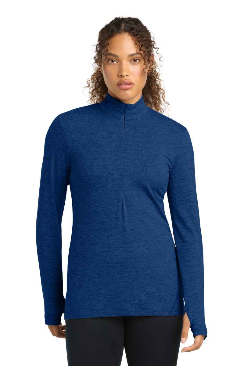 Why did we name this stretchable, moisture-wicking 1/2-zip the 1.5? Because it's light enough to wear as a tee, but warm enough to be a light layer. 5.6-ounce, 88/12 poly/spandex Removable tag for comfort and relabeling Invisible zipper Coverstitch seams throughout Open cuffs and hem Thumbholes to keep hands warm