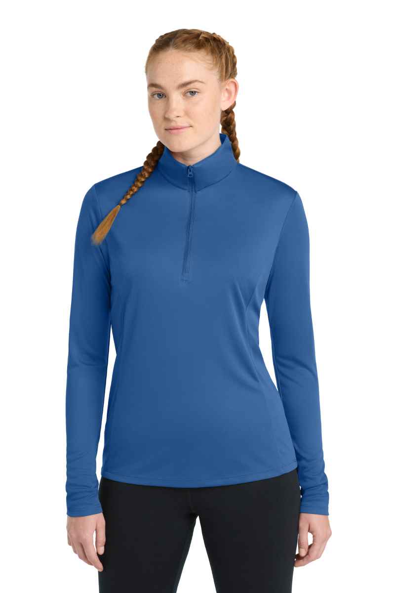 This lightweight pullover locks in color and wicks moisture. It's versatile enough for year-round wear. 3.8-ounce, 100% polyester interlock with PosiCharge technology Removable tag for comfort and relabeling Cadet collar Reverse coil zipper Princess seams Set-in sleeves Open cuffs and hem Drop tail hem