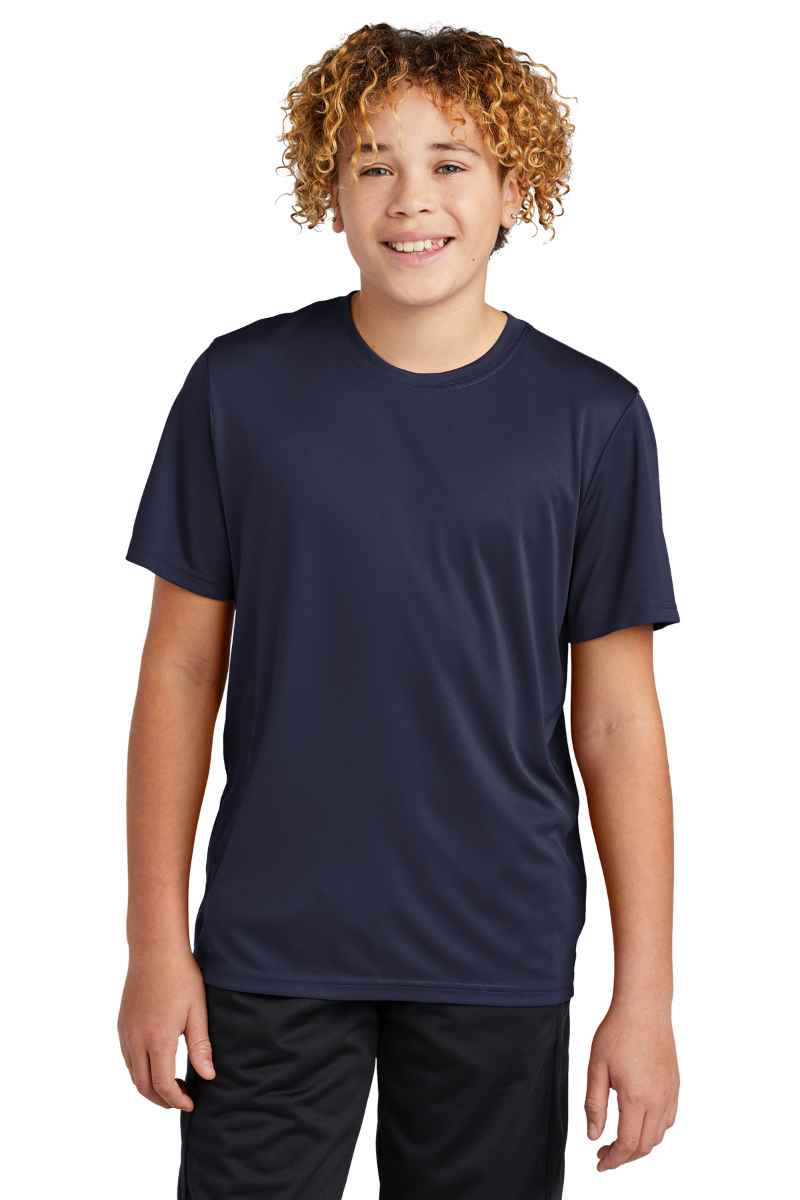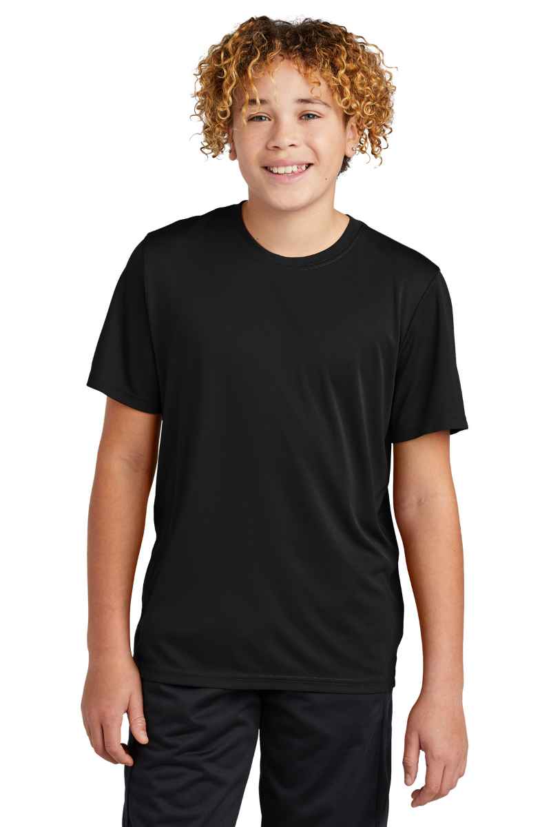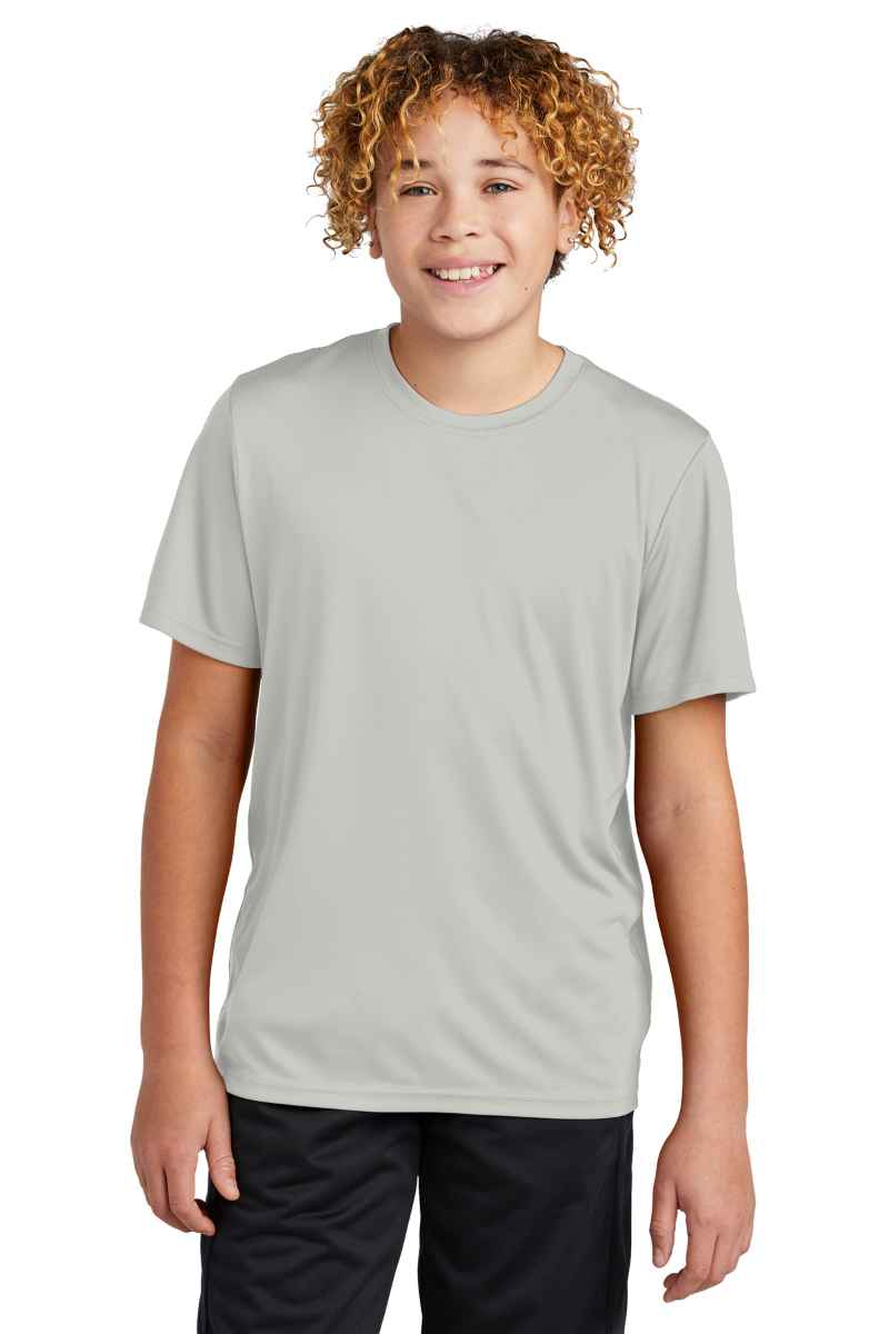Recycled polyester and color-locking PosiCharge technology make this smooth-faced, odor-fighting, moisture-wicking tee outcompete other t-shirts. 3.8-ounce, 100% recycled polyester with PosiCharge technology This product's carbon footprint has been measured and reduced through a combination of preferred materials and investing in carbon offset projects though the ClimeCo Certified Product Program Tear-away removable label Taped neck Set-in sleeves Athletic fit