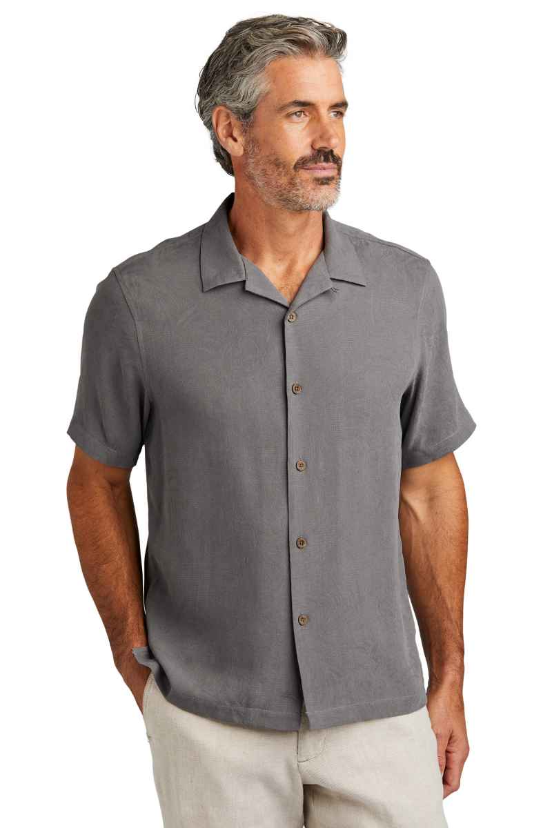 Woven from pure silk with a subtle tropical print, this light, breathable shirt transports you to an island state of mindâ¿¿because you deserve only the finest from sunup to sunset. 4.1-ounce, 100% soft silk jacquard Camp collar Straight hem with side vents Unique coconut buttons Marlin on inside placket above bottom hem