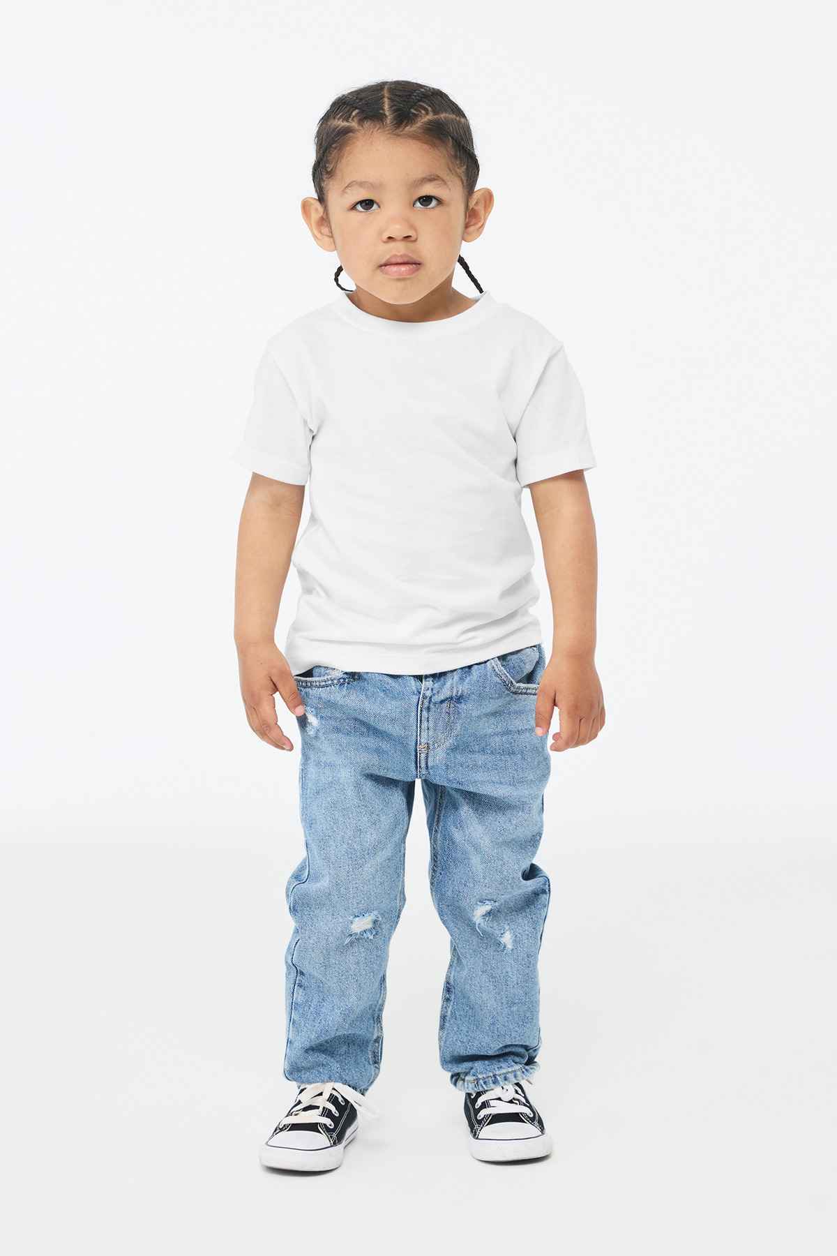Retail fit Crewneck Side seamed Tear-away label 4.2-ounce, 100% Airlume combed and ring spun cotton, 32 singles Heathers and Solid Black Blend: 52/48 Airlume combed and ring spun cotton/polyester Athletic Heather: 90/10 Airlume combed and ring spun cotton/polyester