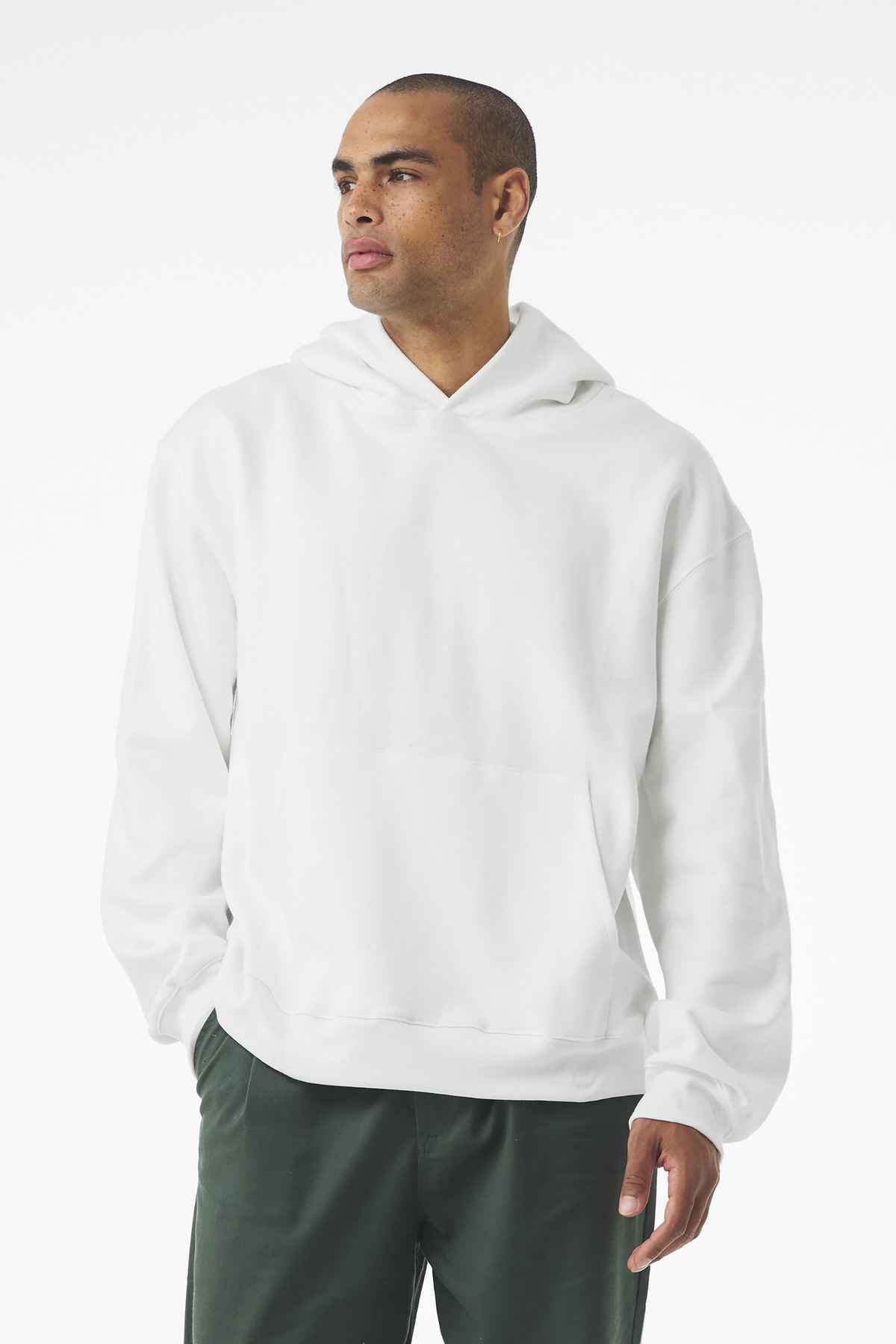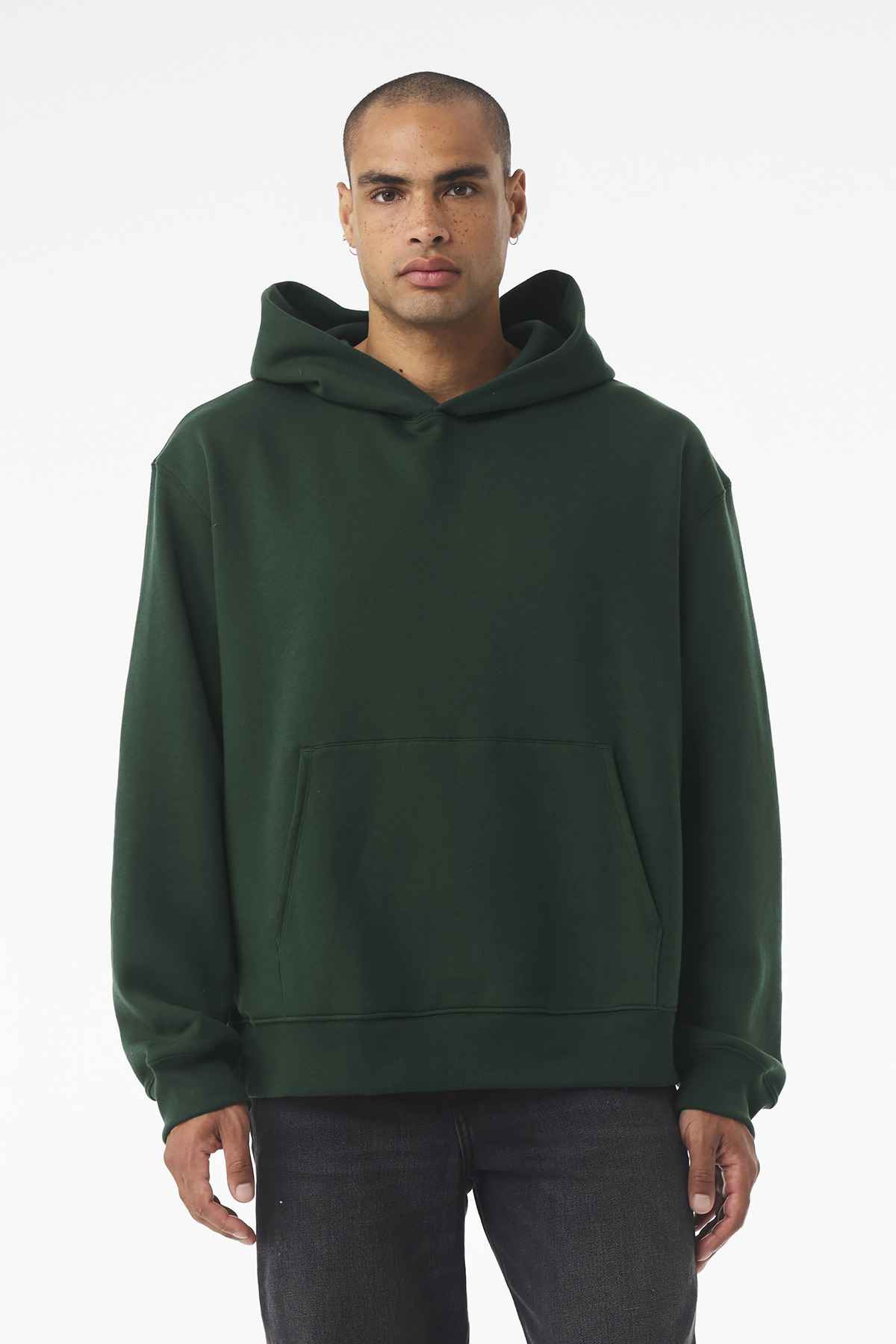 Relaxed fit Double layered hood with single dart construction, no drawcord Interior brushed fleece Side seamed Single front pocket Tear-away label 10-ounce, 60/40 Airlume combed and ring spun cotton/polyester fleece Athletic Heather: 94/6 Airlume combed and ring spun cotton/polyester