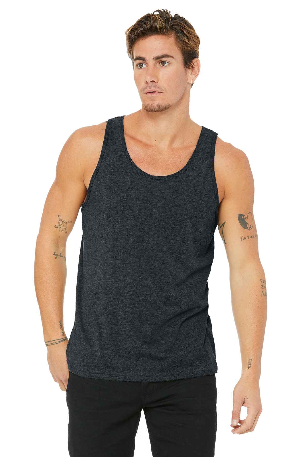 Retail fit Tear-away label Side seamed Solid Colors: 4.2-ounce, 100% Airlume combed and ring spun cotton, 32 singles Athletic Heather/Black Heather: 90/10 Airlume combed and ring spun cotton/poly Dark Grey Heather: 4.2-ounce, 52/48 Airlume combed and ring spun cotton/poly, 32 singles Neon Blue: 3.6-ounce, 52/48 Airlume combed and ring spun cotton/poly, 40 singles Triblend Colors: 3.8-ounce, 50/25/25 poly/Airlume combed and ring spun cotton/rayon, 40 singles