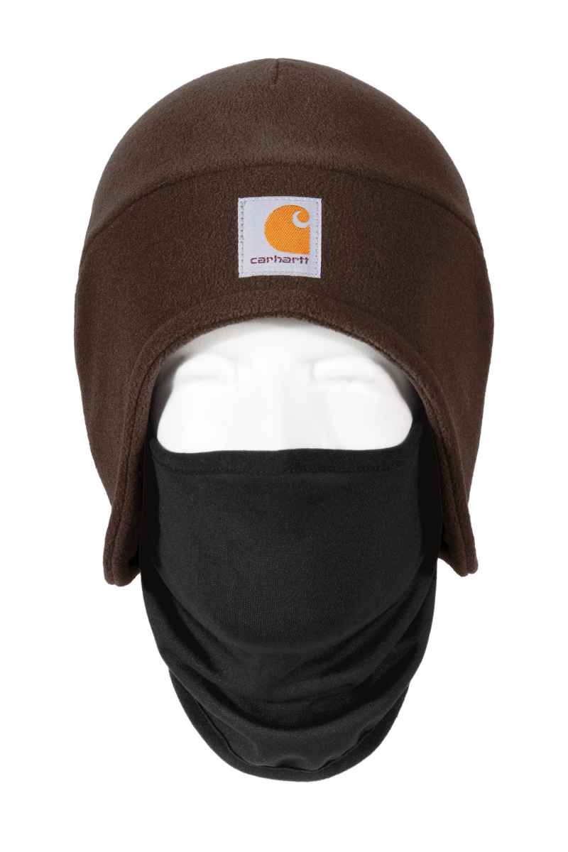 If you work and play outdoors in the winter, you need this 2-in-1 hat and face mask. Hat: 100% polyester fleece for warmth Pull-down face mask: 92/8 poly/spandex Carhartt Force ® fabric fights odors; FastDry ® technology wicks away sweat for comfort Mask can be tucked up into hat when not in use Carhartt label sewn on front