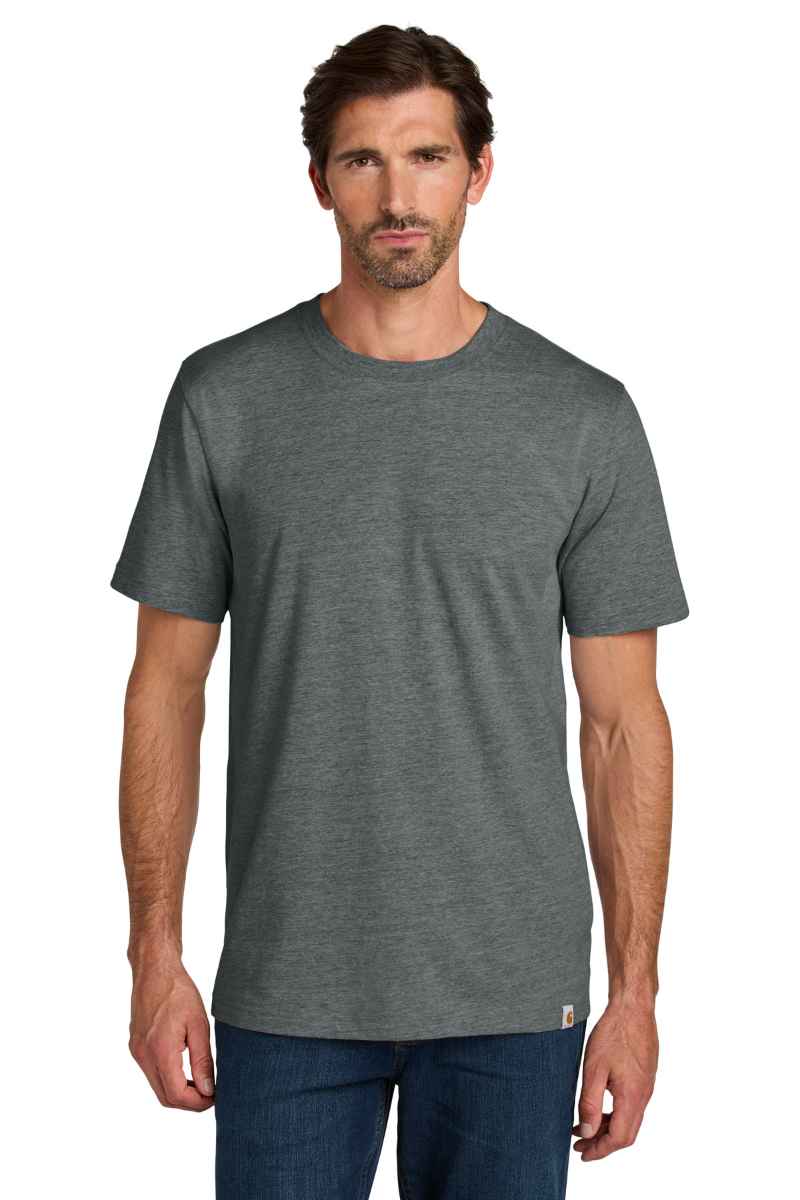 Take on the toughest jobs in warmer climates in this lighter weight 5-ounce tee that has a comfortable cotton feel. Durable 5-ounce, 60/40 cotton/polyester 90/10 cotton/polyester (Heather Grey) Rib knit crewneck Tagless neck label Side-seamed construction minimizes twisting Carhartt label sewn on left hem Relaxed fit
